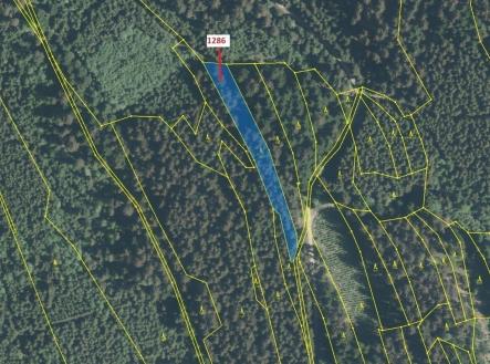 Lesní pozemek o výměře 2442 m2, parcelní číslo 1286, podíl 1/1, katastrální území Lačnov, obec Lačnov, obec s rozšířenou působností Vsetín, okres Vsetín, Zlínský kraj. Po těžbě.