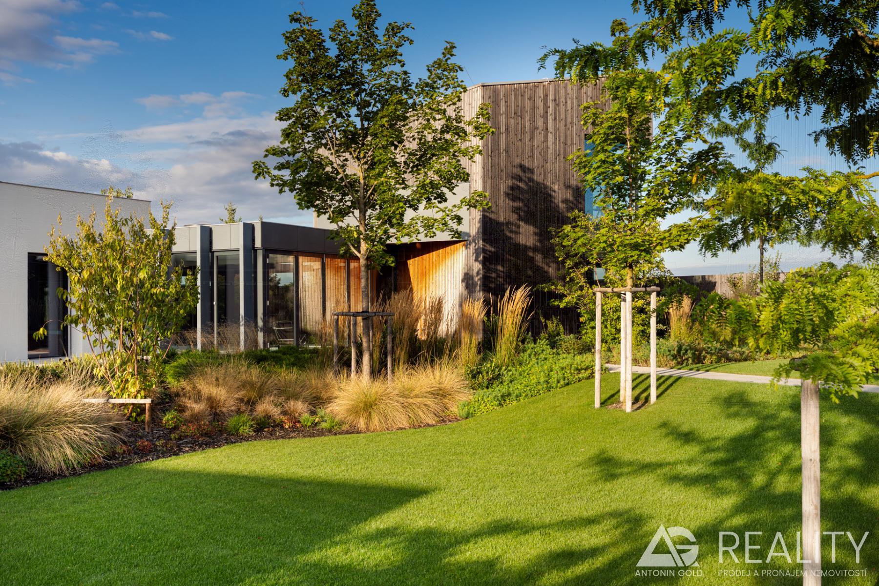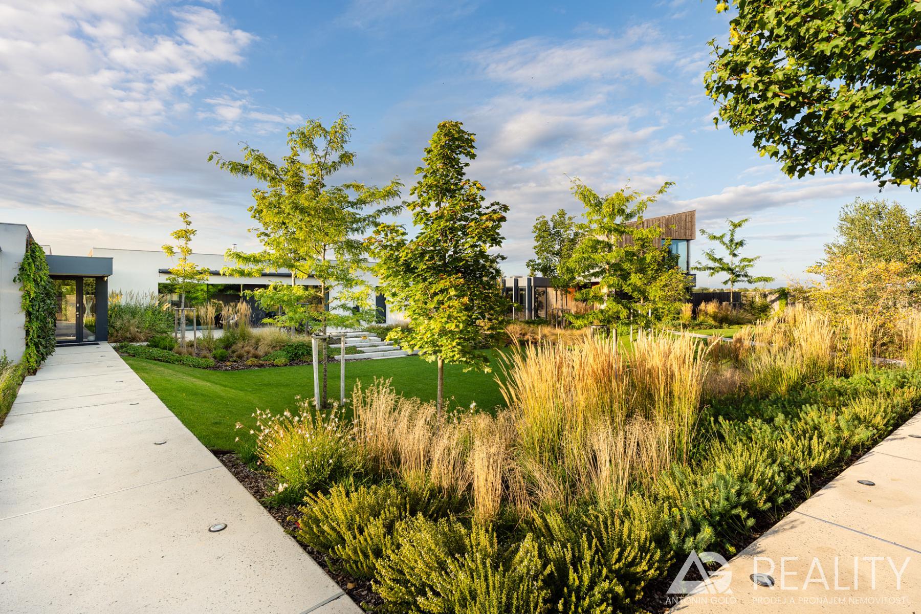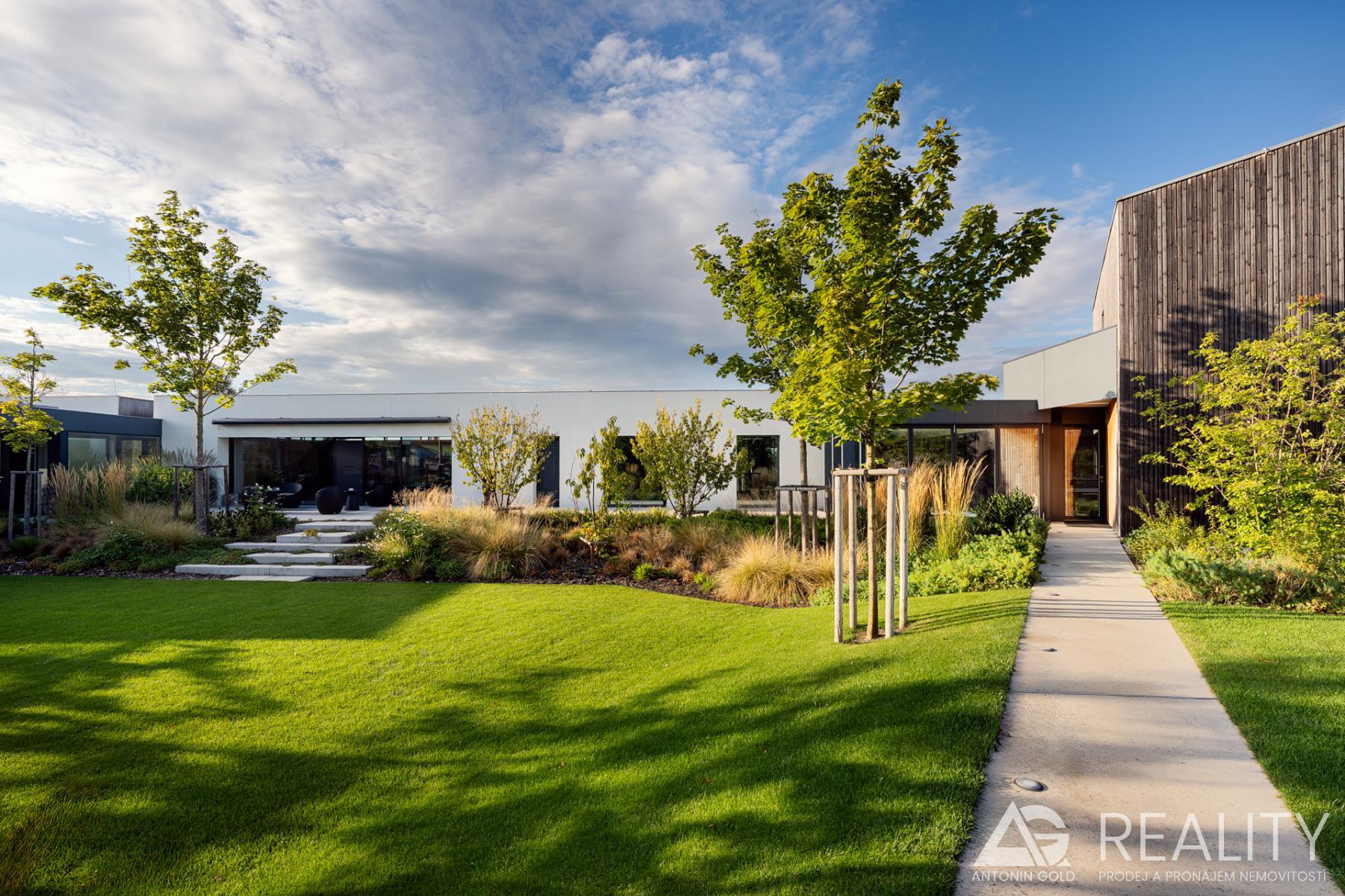 Exkluzivně nabízíme k prodeji výjimečný rodinný dům, který spojuje moderní architekturu s přírodou a nejnovějšími technologiemi, se nachází v prémiové lokalitě, na okraji malebné obce Ladná, v těsném sousedství Lednicko-valtického areálu a s výhledem na majestátní Pálavu. Prémiovost lokality spočívá nejen v sousedství Lednicko-valtického areálu, ale také v ideální dostupnosti do 1 hodiny jízdy autem tří klíčových měst Brna, Bratislavy a Vídně. Samotná stavba je architektonický unikát z dílny renomované architektky Heleny Paz, který se vyznačuje čistými liniemi, sofistikovaným interiérem a promyšleným zasazením do krajiny. Exteriér domu je navržen jako Zahrada plná života podle projektu předního českého zahradního a krajinného designéra Ferdinanda Lefflera. Hlavní myšlenka projektu: tři domy - hlavní vila, vedlejší dům, garáž, tři zahrady - okrasná, společenská, ovocná, tři materiály - surový beton, přírodní kámen, dřevo, tři barvy - bílá, šedá, hnědá, tři vstupy funkčně oddělené zóny. Dům je postaven z kvalitních materiálů, jako jsou kámen, dřevo, sklo a beton, jehož interiér harmonicky navazuje na exteriér, což vytváří příjemnou atmosféru pro každodenní život. Tato nemovitost není jen domov. Je to životní styl, místo, kde se snoubí krása, klid, a moderní technologie v dokonale ladícím celku. Ať už hledáte rodinné sídlo, prostor pro relaxaci, podnikání, nebo kombinaci všeho v dokonalé rovnováze. Inteligentní pasivní dům je plně vybaven moderními technologiemi, jako jsou tepelné čerpadlo země/voda NIBE, podlahové a stěnové topení, rekuperace a chlazení jednotkami Atrea a solární systém Buderus, což zařazuje dům do kategorie energetické náročnosti budovy A (mimořádně úsporná). Provozní náklady na celou nemovitost vycházejí měsíčně na cca 17 787 Kč, přičemž vnitřní bazén je celoročně vyhříván na 30 stupňů Celsia. Jedním z klíčových designových akcentů této rezidence jsou dřevěné prvky z teakového dřeva exkluzivního materiálu, který přináší do prostoru eleganci, teplo a přirozený luxus. Vnitřní posuvné dveře z teakové dýhy byly vyrobené na zakázku, podlahy jsou z masivních teakových prvků, velkoformátové dlažby Techlam. Antracitový Vivix byl použit na exteriérové obklady. Veškerý nábytek byl vyrobený na míru, kuchyňská linka z Corianu, designový nábytek Phase a Lema, spotřebiče a zařízení od prémiových značek Miele, Samsung, Marantz, Hoxter, Hansgröhe, Duravit, důmyslné osvětlení i inteligentní systém Loxone, který zajišťuje efektivní řízení osvětlení, topení, stínění, ozvučení, kamerového systému a dalších prvků. Celý obytný areál je koncipován tak, aby umožňoval plynulé procházení jednotlivými částmi domu i zahrady, čímž se vytváří pocit harmonie a klidu. Tato originální architektonická koncepce domu poskytuje díky prosklení pohledy napříč domem a zahradou z různých úhlů. Díky tomu má člověk pocit bydlení v přírodě. Součástí komplexu je také prostorná dvougaráž a zastřešené parkování pro další vozy, které podtrhují eleganci celého projektu. Hlavní budova se pyšní prostorným obývacím pokojem s krbem, který je plynule propojen s kuchyňským koutem a velkým osmimetrovým oknem, jež nabízí nádherný výhled do zahrady. V zadní části domu se nachází prostorná ložnice, která díky velkému oknu a přímému propojení se zahradou působí jako oáza klidu, přičemž na míru vyrobený nábytek a harmonická barevnost vytvářejí útulné a sofistikované prostředí pro kvalitní odpočinek. Luxusní koupelna u hlavní ložnice, s podlahou a nábytkem z teakového dřeva, originálními umyvadly z říčního kamene, vířivkou a saunou poskytuje dokonalé zázemí pro relaxaci. Krytý bazén (7,0 × 2,7 m) s proti-proudem a chrličem vody je ideálním místem pro odpočinek a aktivní relaxaci. Na bazén navazuje společenská zóna s posezením, grilem, ohništěm a pergolou Sun Systém, dětské hřiště, trávník na míčové hry, relaxační kouty, designový zahradní nábytek Artie nebo venkovní stůl Graveli. Vedlejší dvoupodlažní objekt nabízí prostor pro hosty nebo podnikání, v patře jsou dva prosklené pokoje s malebnými výhledy na části zahrady, koupelna se vstupem na terasu orientovanou do zahrady. V přízemí je obývací prostor s kuchyňským koutem, WC a vybavená posilovna s vlastní sprchou. To vše dohromady z této nemovitosti činí ideální místo pro rodinný život i profesní rozvoj. Tato nemovitost není jen domov, ale styl života, kde se snoubí krása, klid a moderní technologie v dokonalém souladu. Pokud vás tato nemovitost oslovila, neváhejte prosím a vyžádejte si u makléře nabídky další informace, včetně kompletního 3D skenu a podrobnější fotodokumentace. Dalším krokem je domluvení osobní prohlídky nemovitosti.
