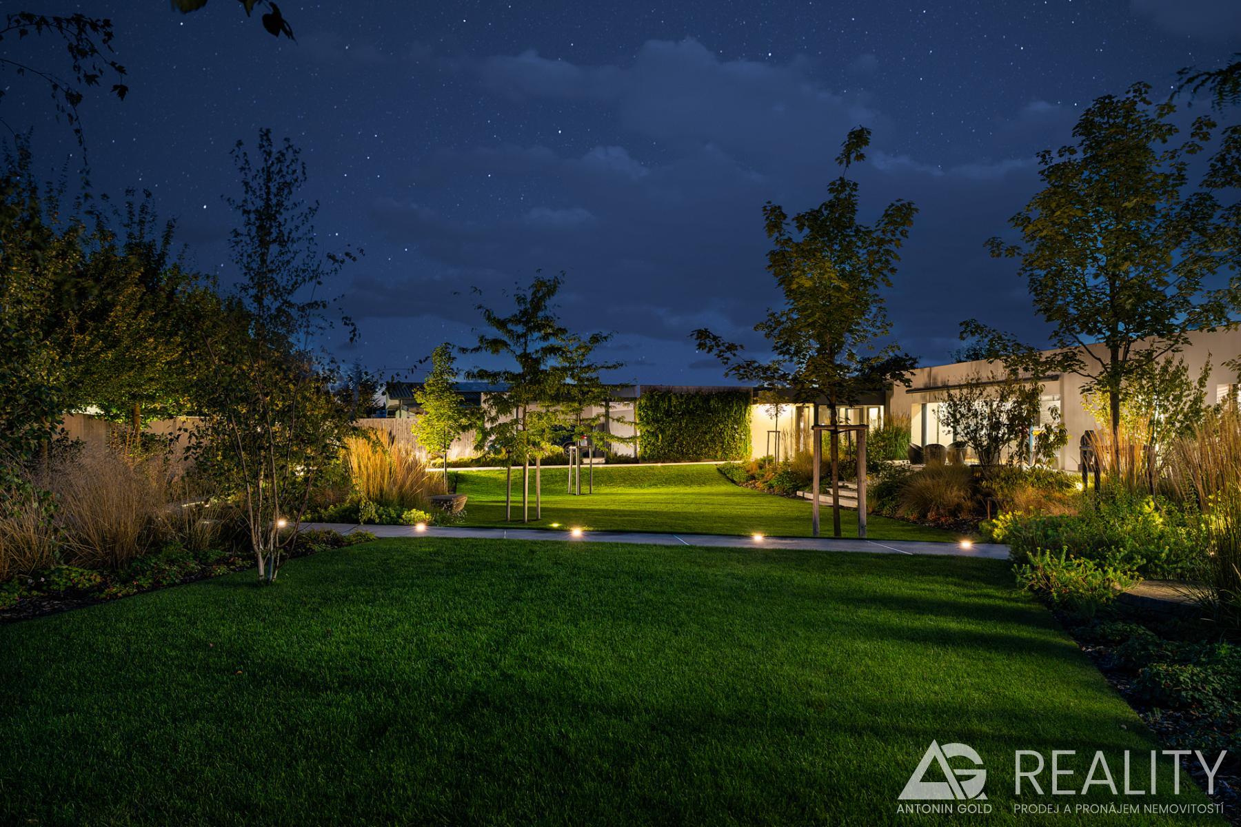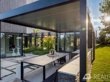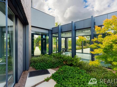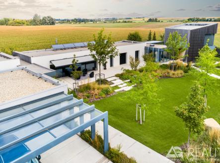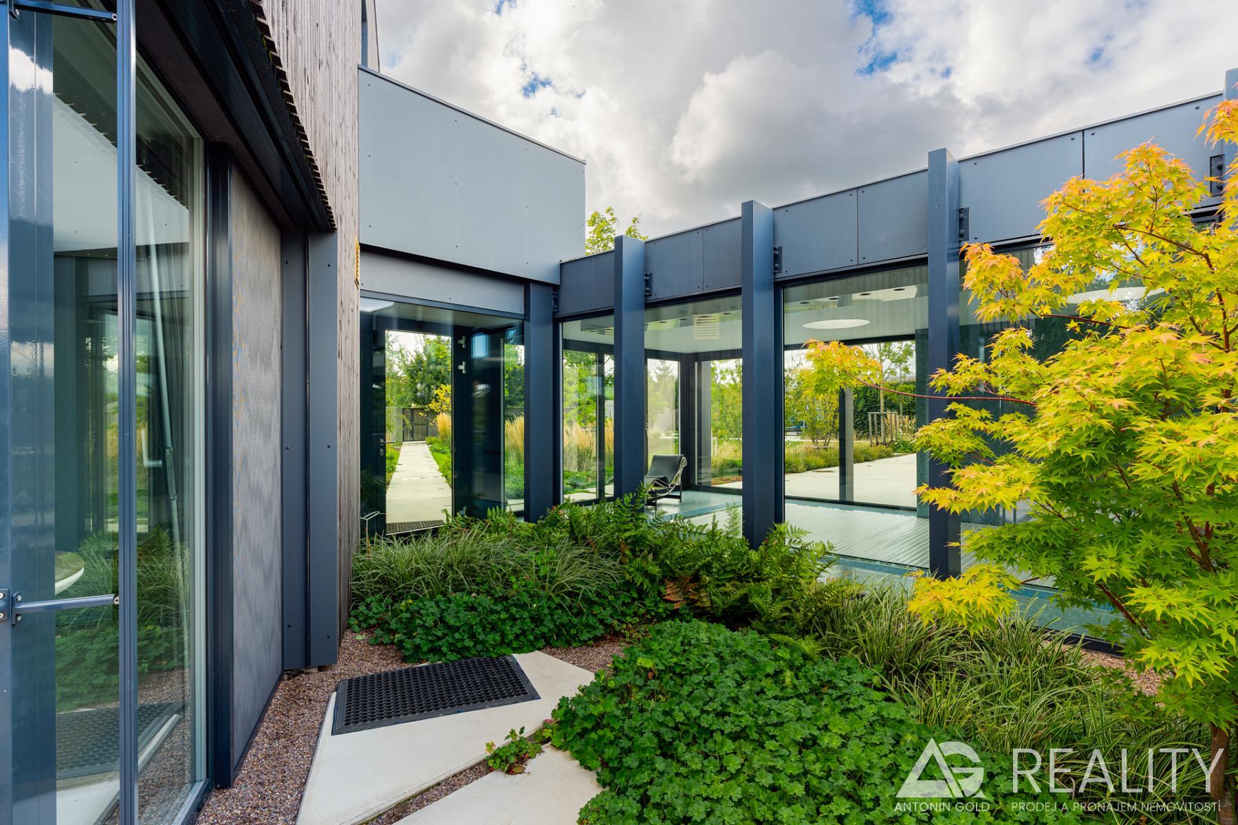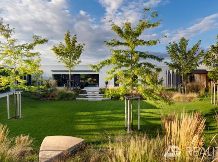 Exkluzivně nabízíme k prodeji výjimečný rodinný dům, který spojuje moderní architekturu s přírodou a nejnovějšími technologiemi, se nachází v prémiové lokalitě, na okraji malebné obce Ladná, v těsném sousedství Lednicko-valtického areálu a s výhledem na majestátní Pálavu. Prémiovost lokality spočívá nejen v sousedství Lednicko-valtického areálu, ale také v ideální dostupnosti do 1 hodiny jízdy autem tří klíčových měst Brna, Bratislavy a Vídně. Samotná stavba je architektonický unikát z dílny renomované architektky Heleny Paz, který se vyznačuje čistými liniemi, sofistikovaným interiérem a promyšleným zasazením do krajiny. Exteriér domu je navržen jako Zahrada plná života podle projektu předního českého zahradního a krajinného designéra Ferdinanda Lefflera. Hlavní myšlenka projektu: tři domy - hlavní vila, vedlejší dům, garáž, tři zahrady - okrasná, společenská, ovocná, tři materiály - surový beton, přírodní kámen, dřevo, tři barvy - bílá, šedá, hnědá, tři vstupy funkčně oddělené zóny. Dům je postaven z kvalitních materiálů, jako jsou kámen, dřevo, sklo a beton, jehož interiér harmonicky navazuje na exteriér, což vytváří příjemnou atmosféru pro každodenní život. Tato nemovitost není jen domov. Je to životní styl, místo, kde se snoubí krása, klid, a moderní technologie v dokonale ladícím celku. Ať už hledáte rodinné sídlo, prostor pro relaxaci, podnikání, nebo kombinaci všeho v dokonalé rovnováze. Inteligentní pasivní dům je plně vybaven moderními technologiemi, jako jsou tepelné čerpadlo země/voda NIBE, podlahové a stěnové topení, rekuperace a chlazení jednotkami Atrea a solární systém Buderus, což zařazuje dům do kategorie energetické náročnosti budovy A (mimořádně úsporná). Provozní náklady na celou nemovitost vycházejí měsíčně na cca 17 787 Kč, přičemž vnitřní bazén je celoročně vyhříván na 30 stupňů Celsia. Jedním z klíčových designových akcentů této rezidence jsou dřevěné prvky z teakového dřeva exkluzivního materiálu, který přináší do prostoru eleganci, teplo a přirozený luxus. Vnitřní posuvné dveře z teakové dýhy byly vyrobené na zakázku, podlahy jsou z masivních teakových prvků, velkoformátové dlažby Techlam. Antracitový Vivix byl použit na exteriérové obklady. Veškerý nábytek byl vyrobený na míru, kuchyňská linka z Corianu, designový nábytek Phase a Lema, spotřebiče a zařízení od prémiových značek Miele, Samsung, Marantz, Hoxter, Hansgröhe, Duravit, důmyslné osvětlení i inteligentní systém Loxone, který zajišťuje efektivní řízení osvětlení, topení, stínění, ozvučení, kamerového systému a dalších prvků. Celý obytný areál je koncipován tak, aby umožňoval plynulé procházení jednotlivými částmi domu i zahrady, čímž se vytváří pocit harmonie a klidu. Tato originální architektonická koncepce domu poskytuje díky prosklení pohledy napříč domem a zahradou z různých úhlů. Díky tomu má člověk pocit bydlení v přírodě. Součástí komplexu je také prostorná dvougaráž a zastřešené parkování pro další vozy, které podtrhují eleganci celého projektu. Hlavní budova se pyšní prostorným obývacím pokojem s krbem, který je plynule propojen s kuchyňským koutem a velkým osmimetrovým oknem, jež nabízí nádherný výhled do zahrady. V zadní části domu se nachází prostorná ložnice, která díky velkému oknu a přímému propojení se zahradou působí jako oáza klidu, přičemž na míru vyrobený nábytek a harmonická barevnost vytvářejí útulné a sofistikované prostředí pro kvalitní odpočinek. Luxusní koupelna u hlavní ložnice, s podlahou a nábytkem z teakového dřeva, originálními umyvadly z říčního kamene, vířivkou a saunou poskytuje dokonalé zázemí pro relaxaci. Krytý bazén (7,0 × 2,7 m) s proti-proudem a chrličem vody je ideálním místem pro odpočinek a aktivní relaxaci. Na bazén navazuje společenská zóna s posezením, grilem, ohništěm a pergolou Sun Systém, dětské hřiště, trávník na míčové hry, relaxační kouty, designový zahradní nábytek Artie nebo venkovní stůl Graveli. Vedlejší dvoupodlažní objekt nabízí prostor pro hosty nebo podnikání, v patře jsou dva prosklené pokoje s malebnými výhledy na části zahrady, koupelna se vstupem na terasu orientovanou do zahrady. V přízemí je obývací prostor s kuchyňským koutem, WC a vybavená posilovna s vlastní sprchou. To vše dohromady z této nemovitosti činí ideální místo pro rodinný život i profesní rozvoj. Tato nemovitost není jen domov, ale styl života, kde se snoubí krása, klid a moderní technologie v dokonalém souladu. Pokud vás tato nemovitost oslovila, neváhejte prosím a vyžádejte si u makléře nabídky další informace, včetně kompletního 3D skenu a podrobnější fotodokumentace. Dalším krokem je domluvení osobní prohlídky nemovitosti.