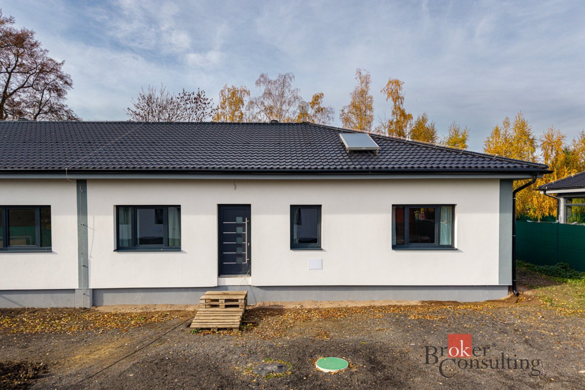 Nabízíme k prodeji nově dokončovaný bungalov 4+kk o obytné ploše 132 m2 v klidné a žádané lokalitě Lahošť u Teplic na pozemku o velikosti 532 m2. Dům je součástí zcela uzavřeného komplexu dvou dvojdomů, přičemž každý má vlastní vstup, pozemek i přípojky – naprosto oddělené zaručující soukromí a pohodlí. Dispozice a vybavení • prostorný obývací pokoj s kuchyní vybavenou všemi spotřebiči a přímým vstupem na zahradu • tři ložnice, ideální pro rodinu • koupelna s vanou, sprchovým koutem a toaletou • samostatné WC pro hosty • podlahové vytápění v celém domě pro maximální komfort • fotovoltaická elektrárna zajišťující nízké provozní náklady a částečnou energetickou soběstačnost Technické informace • vytápění: elektrické podlahové + fotovoltaika • tepelné čerpadlo • parkování: na uzavřeném pozemku Lokalita Lahošť je vyhledávaná obec v blízkosti Teplic, která nabízí klidné rodinné bydlení s výbornou dostupností do města, na dálnici D8 i k veškeré občanské vybavenosti. Ideální kombinace venkovského klidu a městského komfortu. Dům bude kompletně dokončen – stačí se jen nastěhovat. Pro více informací nebo domluvu osobní prohlídky nás neváhejte kontaktovat – rádi vám nemovitost představíme.