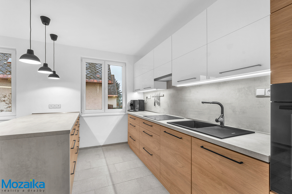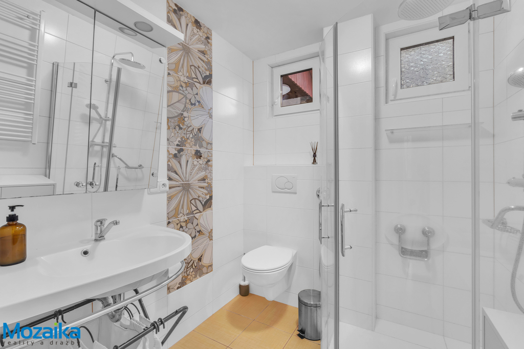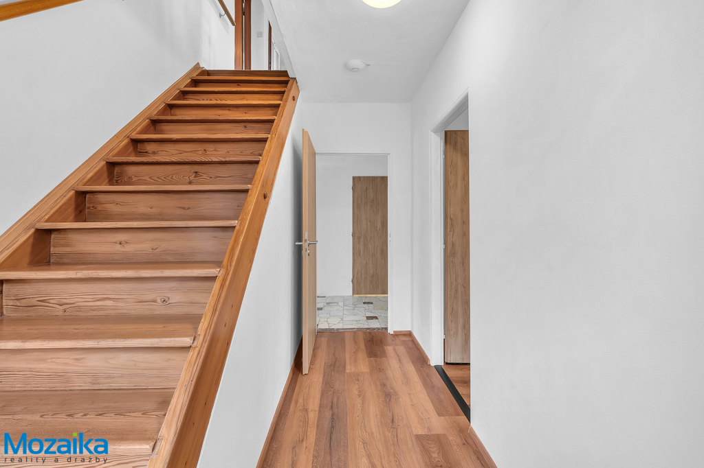 Nabízíme k prodeji prostorný rodinný dům na ulici Dvorská v Lanškrouně, který byl postaven v roce 1972 a prošel postupnou modernizací. Dům disponuje úplným podsklepením, obytným přízemím a útulným podkrovím pod sedlovou střechou. Technické parametry a rekonstrukce: Stavba o půdorysných rozměrech 8,5 x 11 metrů stojí na betonových základech proložených kamenem. Nosné zdivo tvoří polystyrenové tvárnice IGLÚ vyplněné betonem o tloušťce 25 cm, štíty jsou vyzděny z cihel CDM. Stropy nad suterénem a přízemím jsou typu Hurdis, v podkroví pak dřevěné se zateplením. Přízemí i část podkroví prošly kompletní rekonstrukcí. V roce 2008 byla osazena nová plastová okna s dvojsklem v přízemí, o deset let později následovala výměna oken ve sklepě a podkroví. Rok 2018 přinesl také nové elektrické rozvody v celém sklepě, přízemí a v ložnici v podkroví a kvalitní zateplení ložnice v podkroví minerální vatou o síle 24 cm. Příjemné teplo v chladných měsících zajišťuje moderní podlahové vytápění elektrickými rohožemi Ecofilm instalované v přízemí i podkrovní ložnici. V domě Je instalována chytrá domácnost Loxone, která především reguluje vytápění. Dispozice pro pohodlné bydlení: Suterén nabízí garáž s dílnou, prádelnu a tři další místnosti využitelné podle vašich potřeb – ať už jako sklady, hobby místnosti či domácí posilovnu. Přízemí tvoří zádveří, prostorná chodba, koupelna s WC vybavená sprchovým koutem a umyvadlem, kuchyň s krásnou kuchyňskou linkou včetně vestavných spotřebičů, prostorný obývací pokoj přístupný z kuchyně i z chodby a dětský pokoj s oknem do zahrady. Z chodby vede přístup na terasu směřující do zahrady, kde najdete zděný zahradní domek na nářadí. Podkroví disponuje samostatným WC, koupelnou s vanou a umyvadlem, třemi pokoji, druhou kuchyní, komorou a půdním prostorem. Tato dispozice je ideální pro rodiny s dětmi i pro vícegenerační bydlení. Celý dům je krásně prosvětlený a působí moderním, vzdušným dojmem. Zahrada a okolí: K domu náleží rovinatá oplocená zahrada se zděným zahradním domkem – ideální místo pro letní posezení, grilování či dětské hry. Lokalita jako stvořená pro rodiny: A teď to nejdůležitější – umístění domu je naprosto výjimečné. Ulice Dvorská je klidná vedlejší komunikace prakticky bez průjezdné dopravy, takže zde děti mohou bezpečně pobíhat venku. Doslova za rohem se nachází základní škola – představte si ty klidné ranní vstávání, když vaše ratolesti zvládnou cestu do školy samy za pár minut! Žádné stresové ranní rozvážení autem, žádné stání v kolonách. Pro sportovně založené rodiny je tu další bonus – tenisové kurty jsou také na dosah ruky. Odpolední tenis s přáteli nebo kroužek pro děti ? Žádný problém, stačí se projít. A přestože si užijete klid okrajové části města, do centra Lanškrouna se pohodlně dostanete pěšky během deseti minut. Veškerá občanská vybavenost, obchody, restaurace i kulturní vyžití máte na dosah. Tento dům zkrátka nabízí to nejlepší z obou světů – klid rodinného bydlení a dostupnost městských služeb. Rádi vás přivítáme na prohlídce.