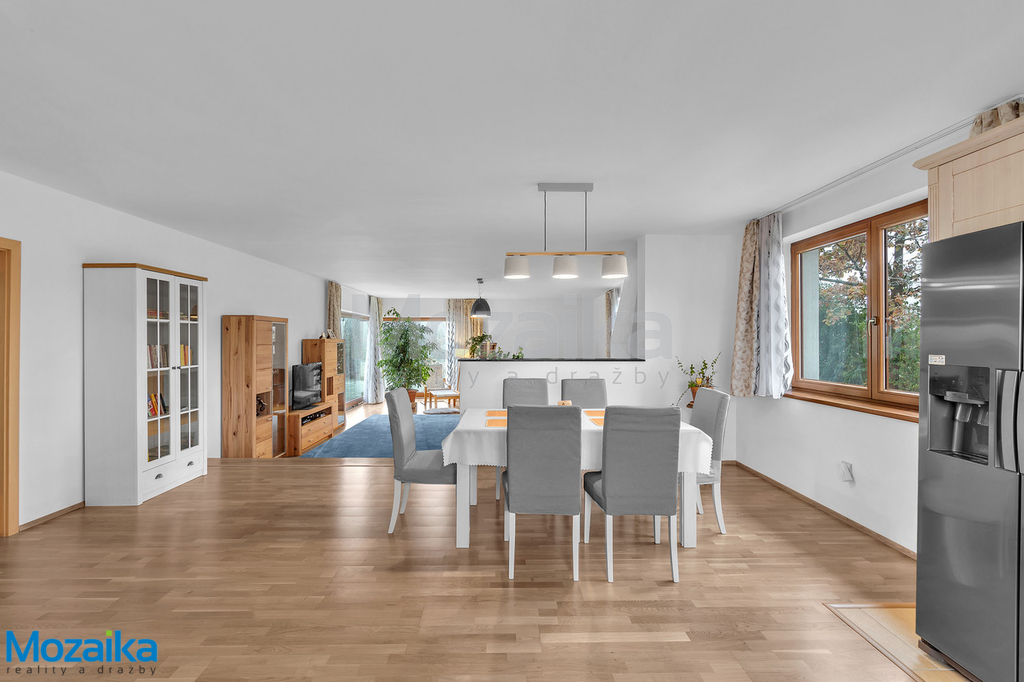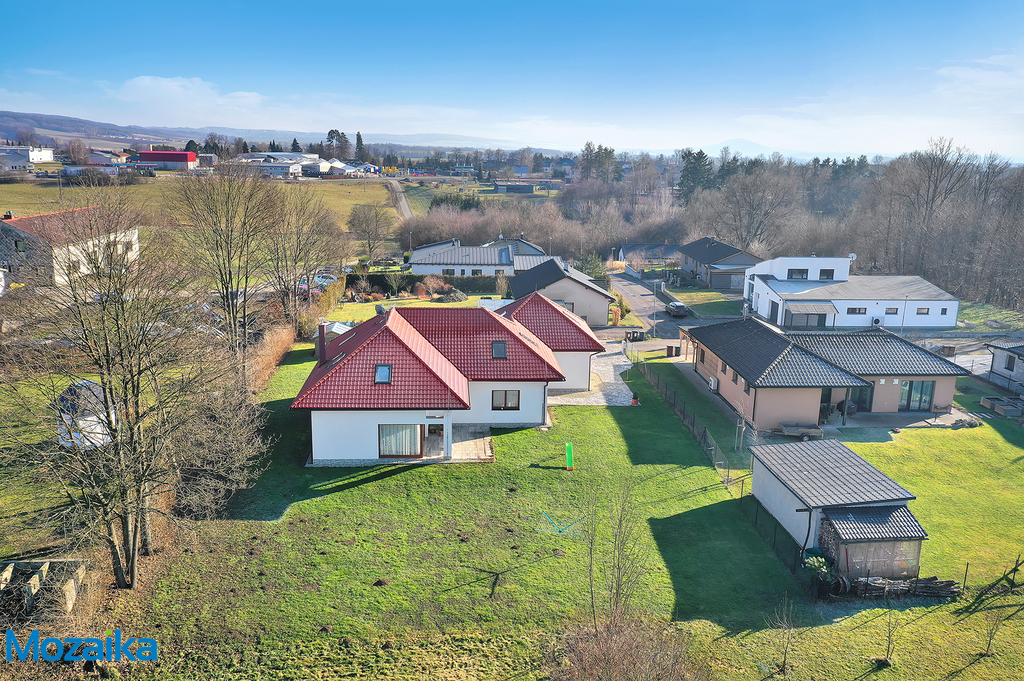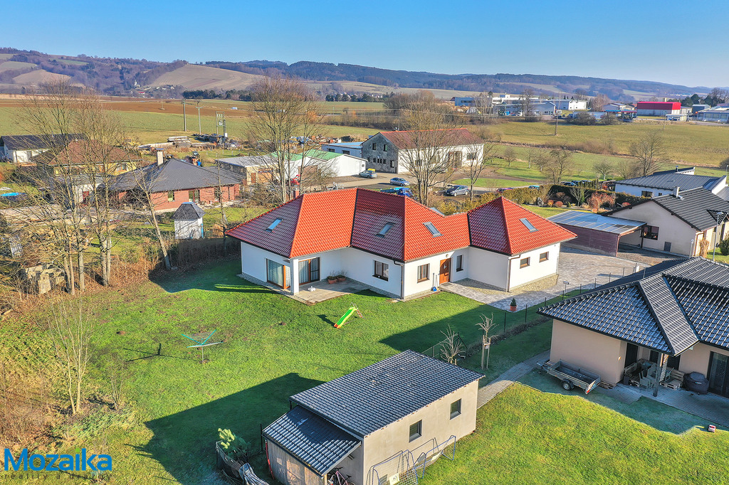 Hledáte prostorný rodinný dům se zahradou a dvougaráží, který se stane vaším dokonalým domovem? Místo, kde najdete klid, prostor a moderní technologie, které vám zpříjemní každý den? Představujeme vám jedinečný nízkoenergetický rodinný dům v klidné lokalitě Lanškrouna, který splní i ty nejnáročnější požadavky na moderní bydlení. Lanškroun je krásné město v podhůří Orlických hor, pouhých 12 kilometrů od oblíbených lyžařských středisek Čenkovice a Červená Voda. Tento dům stojí v lokalitě na okraji města, kde se nachází pouze deset rodinných domů obývaných mladými rodinami s dětmi. Lokalita nabízí perfektní kombinaci klidného bydlení s výbornou dostupností všech služeb a občanské vybavenosti města. Tento prostorný, světlý a precizně postavený dům je ideální i pro větší rodiny hledající komfort, dostatek prostoru a soukromí pro každého člena domácnosti a kvalitní zázemí. Dům je nepodsklepený a disponuje obytným přízemím a podkrovím s velkorysou užitnou plochou 328 metrů čtverečních. Je postaven z vysoce kvalitních materiálů, což zaručuje dlouhou životnost a nízké provozní náklady. Energetická třída B je důkazem jeho nízkoenergetického charakteru, který vám ušetří nemalé finanční prostředky za energie. U domu se nachází praktická dvougaráž s přímým vstupem do domu, další parkovací místa před garáží a upravená rovinatá zahrada, která nabízí dostatek prostoru pro relaxaci, dětské hry nebo zahradničení. V případě požadavku na ještě větší zahradu je zde možnost dokoupení dalšího navazujícího pozemku, což vám dává flexibilitu pro budoucí rozšíření vašeho soukromého zázemí. Dispozice domu je promyšlená do posledního detailu. V přízemí vás přivítá vstupní zádveří, které navazuje na prostornou halu se schodištěm vedoucím do podkroví. Najdete zde také koupelnu s WC, praktickou šatnu, spíž, pracovnu a moderní kuchyň propojenou s jídelnou a obývacím pokojem. Z obývacího pokoje je přímý vstup na terasu, která je ideálním místem pro venkovní posezení s rodinou a přáteli. V přízemí se dále nachází prostorná dvougaráž s přímým vstupem do domu, což oceníte zejména při nepříznivém počasí nebo při vykládání nákupů. V podkroví se nachází chodba, prostorná ložnice, šatna, další pokoj, koupelna, samostatné WC a velká pracovna, která je přístupná přes garáž a nabízí tak možnost využití například pro kancelář, služby nebo domácí podnikání aniž budete rušit rodinu. Dům tak nabízí dostatek soukromí pro každého člena rodiny a flexibilitu využití jednotlivých místností podle vašich aktuálních potřeb. Dům byl postaven s důrazem na kvalitu a funkčnost. Obvodové zdivo je z cihelných bloků POROTHERM 44 T Profi Dryfix, vnitřní příčky pak z POROTHERM 11,5 Dryfix. Stropní konstrukci tvoří předpjaté železobetonové panely SPIROLL. Přístup do podkroví zajišťuje monolitické železobetonové schodiště s elegantním dřevěným obkladem. Střecha je valbová, pokrytá pálenými taškami, a pro maximální prosvětlení podkroví jsou zde osazena kvalitní střešní okna VELUX, která poskytují dostatek přirozeného světla a možnost větrání. Topení v domě je řešeno moderním podlahovým vytápěním napojeným na tepelné čerpadlo, které zajišťuje nízké náklady na provoz a rovnoměrné rozložení tepla v celém domě. Dalším zdrojem vytápění je krbová vložka v obývacím pokoji, která navodí příjemnou atmosféru během chladných večerů a slouží také jako záložní zdroj tepla. Podlahy v celém domě, mimo garáž, jsou vylity z anhydritu, což zajišťuje jejich dokonalou rovnost a pevnost. Podhledy jsou ze sádrokartonu s tepelnou izolací o tloušťce 260 milimetrů. V chodbách, koupelnách, technické místnosti a garáži jsou položeny kvalitní dlažby odolné proti mechanickému poškození. Okna jsou dřevěná typu EURO s izolačním dvojsklem a celoobvodovým kováním, což přispívá k výborné tepelné a zvukové izolaci a zajišťuje maximální komfort bydlení. Vnitřní dveře jsou také dřevěné, osazené do obložkových zárubní, což dodává domu elegantní a nadčasový vzhled. Garážová vrata jsou sekční, zateplená a vyrobená z kovové konstrukce s možností dálkového ovládání. Dům je napojen na elektrickou síť 220/380 V, obecní vodovod a kanalizaci, takže máte zajištěny všechny potřebné inženýrské sítě bez nutnosti dalších investic. Celková užitná plocha domu činí 328 metrů čtverečních, což poskytuje dostatek prostoru pro pohodlné bydlení i větší rodiny. Tento dům je nejen praktický, ale i esteticky velmi příjemný. Nabízí moderní technologie, nízké provozní náklady a skvělé dispoziční řešení. Pokud hledáte ideální místo pro život v klidné lokalitě s výbornou dostupností, tento dům je tou pravou volbou. K nastěhování je možné přistoupit ihned po zaplacení kupní ceny. Jedná se o nemovitost ve výborném stavu, která vám nabídne komfortní bydlení s minimálními provozními náklady a maximálním pohodlím pro celou rodinu. Nenechte si ujít tuto jedinečnou příležitost a přijďte se přesvědčit na vlastní oči o kvalitách tohoto krásného rodinného domu.