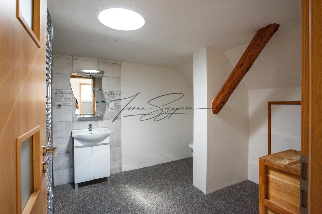 K prodeji prostorný rodinný dům 5+kk se 2 koupelnami, zahradou, pergolou, v centru obce Ledenice, ulice 5. května 243, pouhých cca 15 km od Českých Budějovic. Prostorný dům 5+kk se 2 koupelnami, má 2 nadzemní podlaží. V přízemí se nachází vstupní předsíň se schodištěm do patra, prostorná kuchyně s jídelním koutem, velký obývací pokoj, ložnice, pokoj a koupelna s vanou. Ve 2. nadzemním podlaží jsou situovány další 2 pokoje a druhá koupelna se sprchovým koutem, což poskytuje komfortní zázemí i pro větší rodinu. Dům je v dobrém technickém stavu a zateplený fasádním polystyrenem o tloušťce 18 cm. Zastavěná plocha činí 76 m², celková plocha pozemku 255 m². Přístup k domu je zajištěn věcným břemenem přes sousedův pozemek, podél domu. Nemovitost je napojena na veřejný vodovod, veřejnou kanalizaci, elektřinu a plyn. Vytápění a ohřev vody zajišťuje plynový kotel, který byl měněn v roce 2023, zároveň je k dispozici záložní kotel na dřevo. Splachování WC je napojeno na vlastní studnu. Součástí domu je také zastřešený dřevník. Na pozemku se nachází udržovaná zahrada s pergolou a venkovním posezením, vhodná pro relaxaci i rodinné využití. Obec Ledenice nabízí kompletní občanskou vybavenost, mateřskou a základní školu, lékaře, poštu, obchody, restaurace i sportovní vyžití. Výborná je také dopravní dostupnost, a to jak autem, tak veřejnou dopravou (autobus, vlak). Dostupnost do Českých Budějovic je 15 min. jízdy. Okolí je ideální pro cykloturistiku, turistiku i volnočasové aktivity v přírodě. Více informací Vám poskytne realitní makléřka Ivana Szepová.