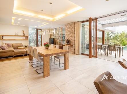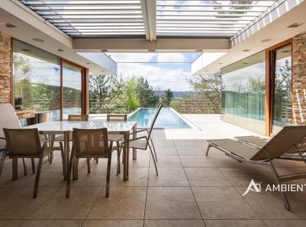 Prodej luxusní vily 4+kk s bazénem, garáží pro 2 vozy a nádhernou okrasnou zahradou v Lelekovicích