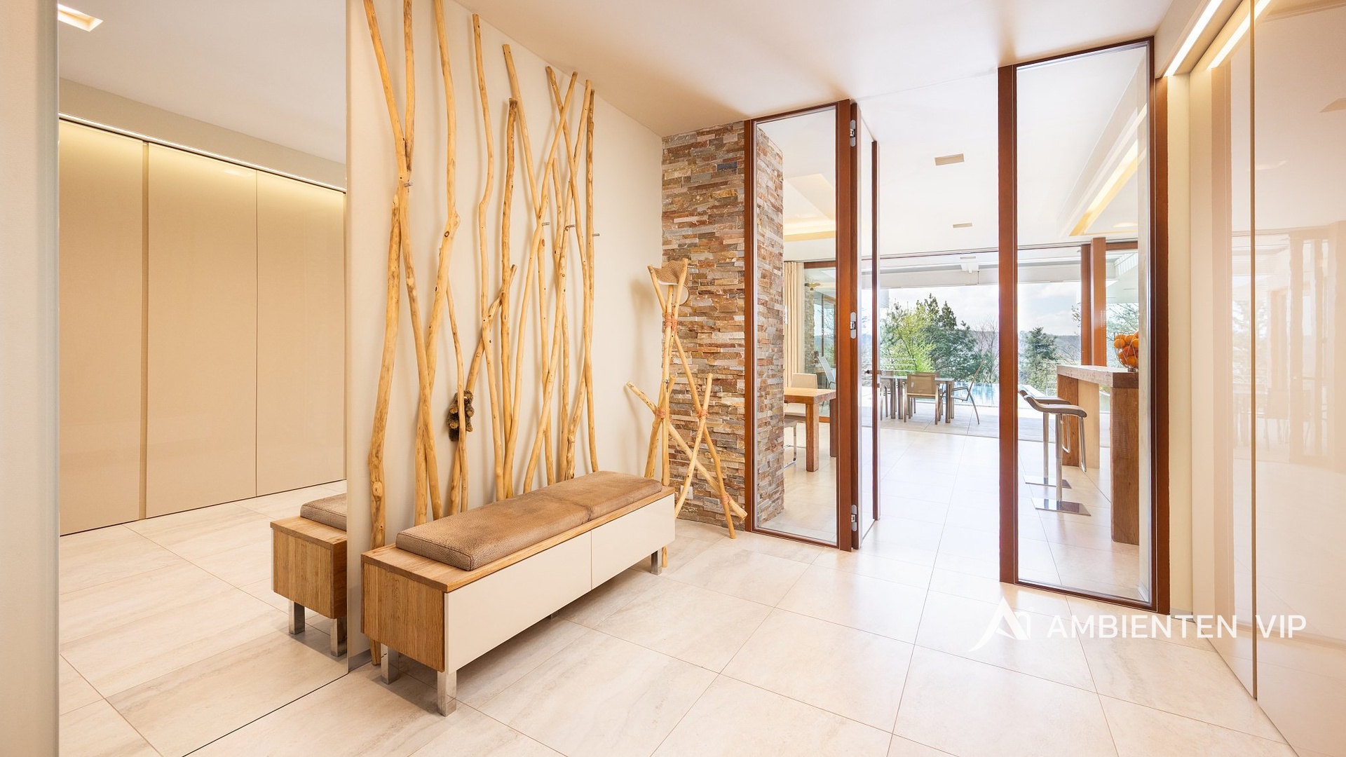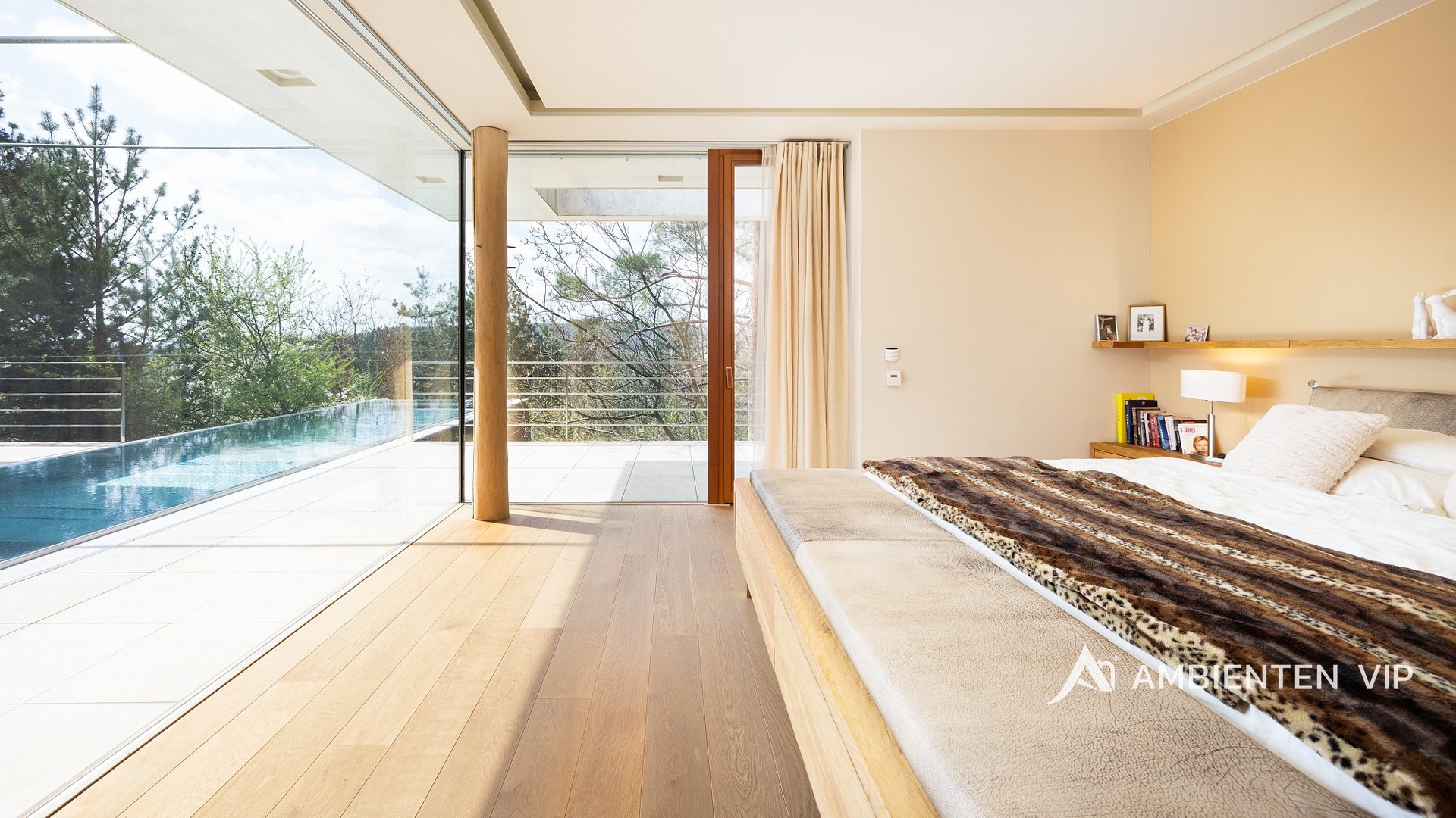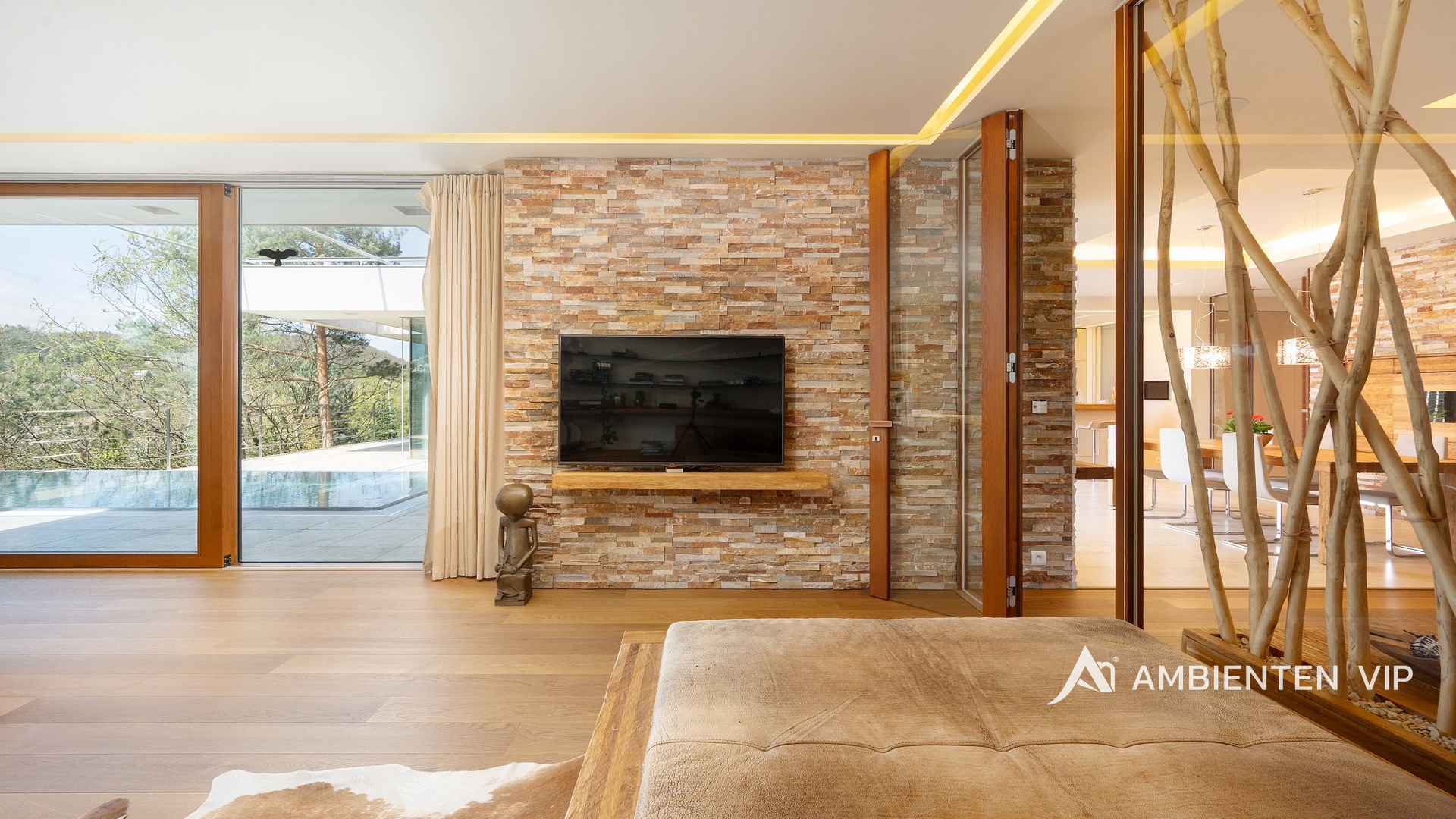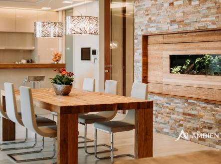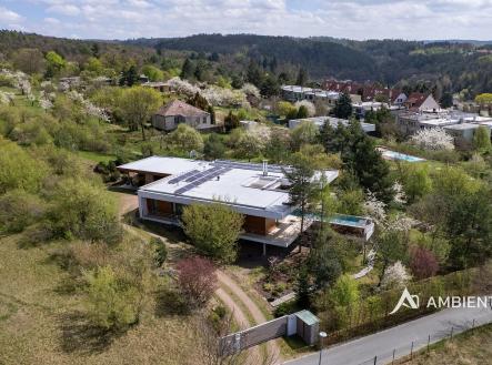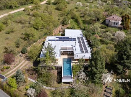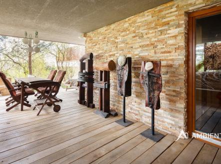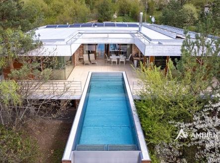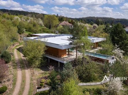 AMBIENTEN VIP si vám dovoluje výhradně nabídnout k prodeji luxusní samostatně stojící vilu v obci Lelekovice severně od Brna. Nemovitost je v perfektním technickém stavu bez nutnosti investic. Jedná se o atypický prodej nemovitosti, kdy majitelé nemovitosti prodávají vilu s pozemky, avšak za podmínky možnosti vilu užívat po dobu dalších dvaceti let. Nemovitost je určena klientům, kteří hledají vhodnou investiční příležitost uložení svých prostředků do této výjimečné nemovitosti, která je umístěna na kopci s výhledy. Nachází se uprostřed zeleně a přitom 10 min. jízdy k obchodnímu centru Globus. Majitelé garantují, že po dobu dalších dvaceti let budou provádět její údržbu, hradit veškeré energie a starat se o vilu tak, aby zůstala i nadále v perfektním technickém stavu do jejího finálního předání kupujícím. Lhůta dvaceti let není lhůtou finální, v časovém horizontu může být i kratší, je vázána na dožití majitelů v této vile. Předem uvádíme, že se nejedná o standardní prodej nemovitosti s možností okamžitého předání budoucím kupujícím po přepisu na katastru. Předání domu bude vázáno na dožití majitelů v tomto domě. Celková výměra pozemku činí 2.118 m2, podlahová plocha obytná má výměru 387,66 m2. Dům je naprosto výjimečný svým provedením a technickým stavem. Jeho poloha je vhodná pro klienty, kteří preferují klidnou lokalitu přímo u lesa a k tomu nádherné výhledy. Nemovitost je napojena na veřejný vodovod, kanalizaci a příjezd k ní je po asfaltové komunikaci. Zastávka autobusu je 700 m, vlaku 2 km, nájezd na rychlostní komunikaci Brno – Svitavy 2,5 km. Nemovitost je z roku 2013 a je provedena velice nadstandardně. Energetická třída vily je B. V suterénu vily se nachází společenská místnost, toaleta a technická místnost. V 1 NP dvojgaráž, přístřešek pro další vůz, dřevěný sklad, zádveří, vstupní chodba, koupelna s toaletou, pracovna, obývací pokoj s jídelnou a kuchyňským koutem, spíž, terasa s krbem a nerezovým bazénem o délce 12 m, technická místnost, toaleta a dvě ložnice a dále luxusní koupelna a šatny. K dispozici je projekt skutečného provedení, který souhlasí s faktickým stavem vily. Tvar nemovitosti je H. Stavba je zděná z keramických tvárnic tloušťka stěn 45 cm a obložena kamenným a dřevěným obkladem. Stropy jsou monolitické, střecha je plochá, střešní krytina je PVC fólie, okna jsou dřevěná Euro okna s izolačními dvojskly s venkovními žaluziemi, dveře jsou dřevěné masivní, podlahy jsou dřevěné a dále jsou zde dlažby s epoxidovou stěrkou. Topení je ústřední podlahové. Tepelné čerpadlo je země – voda. Jsou zde 3 vrty hl. 80 m, chlazené stropy, v obývacím pokoji krb. Dále je zde úpravna vody. Ve vile jsou celkem 4 umyvadla, 2 sprchové kouty, vana, tři toalety a dva bidety, centrální vysavač, EZS a EKS a systém chytré domácnosti. FVE 9,9 kWp s bateriovým úložištěm. V případě dalších upřesnění k vile a způsobu prodeje se na nás s důvěrou obraťte.
