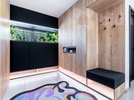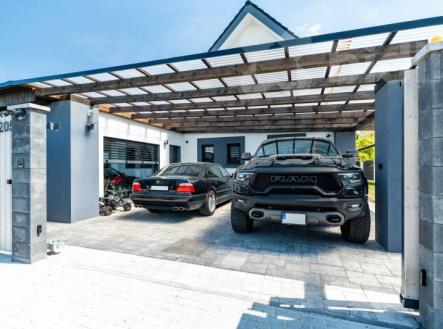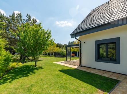 Celková užitná plocha domu činí 150 m2. Dům je po celkové nadstandardní a designové rekonstrukci z r. 2023. Detaily mohou být upraveny dle přání kupujícího. Na střechu jsou instalovány fotovoltaické panely včetně vlastního battery boxu. Dům je proto více než 7 měsíců v roce energeticky soběstačný. Vytápění je řešeno elektrickým kotlem, garáž, chodba a technická místnost jsou vytápěny podlahovým topením. Horní patro domu je klimatizováno. Interiérové dveře Sapeli s výškou průchodu 210 cm (zapuštěné panty, magnetické střelky). Okna s trojskly Vekra s hliníkovým HS portálem. Interiérové stínění (plisé), venkovní žaluzie z-90 s integrovanými sítěmi. Jako osvětlení je použito Philips Hue RGBW (včetně zahradního). V celém objektu je zabezpečovací systém s dotykovými obrazovkami Paradox. Kamerový systém se sledováním přes mobilní telefon. Centrální ovládání Somfy Tahoma včetně obou vjezdových bran a garážových vrat. V zadní části domu je nově vybudovaná bioklimatická pergola s otevírací střechou, led osvětlením a screenovou roletou na boku. Na zahradě je v dětské zóně zapuštěná trampolína. Na celém pozemku je závlahový systém ovládaný Wifi. Voda je dodávána z vrtané studny o hloubce 36 metrů a dům je napojen také na veřejný řad. V docházkové vzdálenosti se nachází jezero Lhota. V obci je obchod, restaurace a ordinace praktického lékaře. Kompletní síť služeb občanské vybavenosti je v Brandýse nad Labem - Staré Boleslavi, vzdáleném 5 Km. Dobrá dostupnost na dálnici D10 a do Prahy. Nemovitost je vhodná pro rodinu s dětmi a nabízí veškerý komfort a dostatek soukromí. Pro bližší informace a prohlídku mě neváhejte kdykoliv kontaktovat.