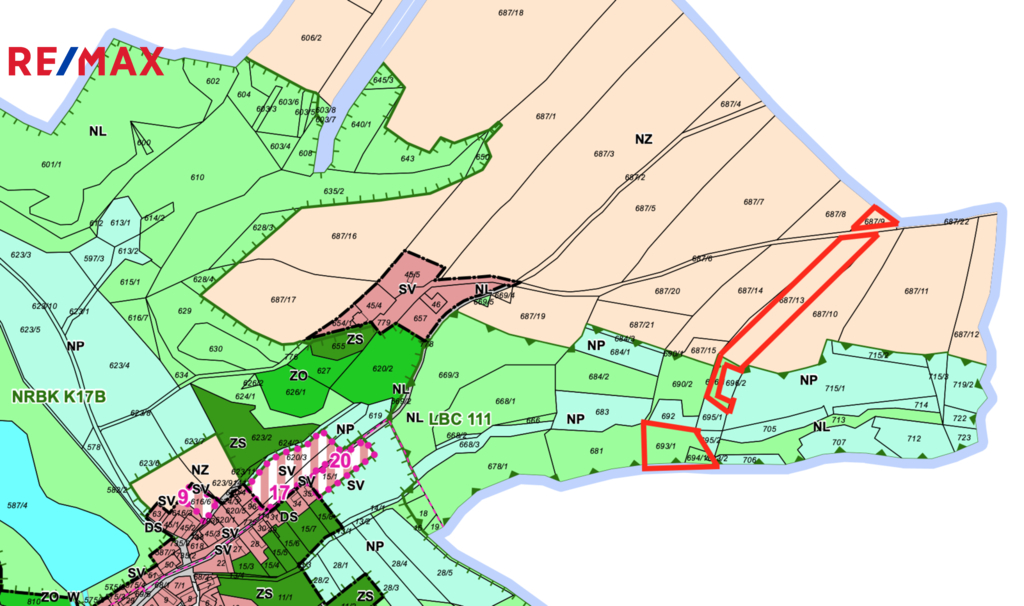 Nabízíme Vám prodej zemědělských pozemků o velikosti 9.471m2 (6 222m2 orná půda, 3 249m2 lesní pozemek). Informace z územního plánu: NZ plochy zemědělské Hlavní využití: zemědělské hospodaření Přípustné jsou: - nezbytné stavby pro obhospodařování a údržbu ploch; - komunikace pro hospodaření. Podmíněné jsou: podmínka zpracování projektové dokumentace - liniové a plošné stavby dopravní a technické vybavenosti; - změny kultur zemědělské půdy (např. na ornou půdu, trvalé travní porosty, zahrady, pozemky určené k plnění funkcí lesa); - vodní plochy. Nepřípustné jsou: - stavby pro bydlení, výrobu, občanské vybavení, rekreaci. NL plochy lesní Hlavní využití: pěstování lesních porostů hospodářských, ochranných, nebo lesů zvláštního určení. Lesní porosty pro hospodářské a rekreační využití Přípustné jsou: - komunikace pro hospodaření a těžbu, plochy pro manipulaci se dřevem; - cesty pro pěší, stezky pro cyklisty; - stavby pro údržbu a lesní hospodaření; - stavby a zařízení sloužící obsluze ploch; - stavby a zařízení technické infrastruktury. Podmíněné jsou: podmínka zpracování projektové dokumentace - liniové a plošné stavby dopravní a technické vybavenosti; - stavby pro turistiku (altány, odpočinková a informační místa); - drobná architektura, sakrální stavby. Nepřípustné jsou: - veškeré stavby a využití ploch, které nesouvisí s přípustným využitím; - stavby pro bydlení, občanské vybavení, výrobu a rekreaci.