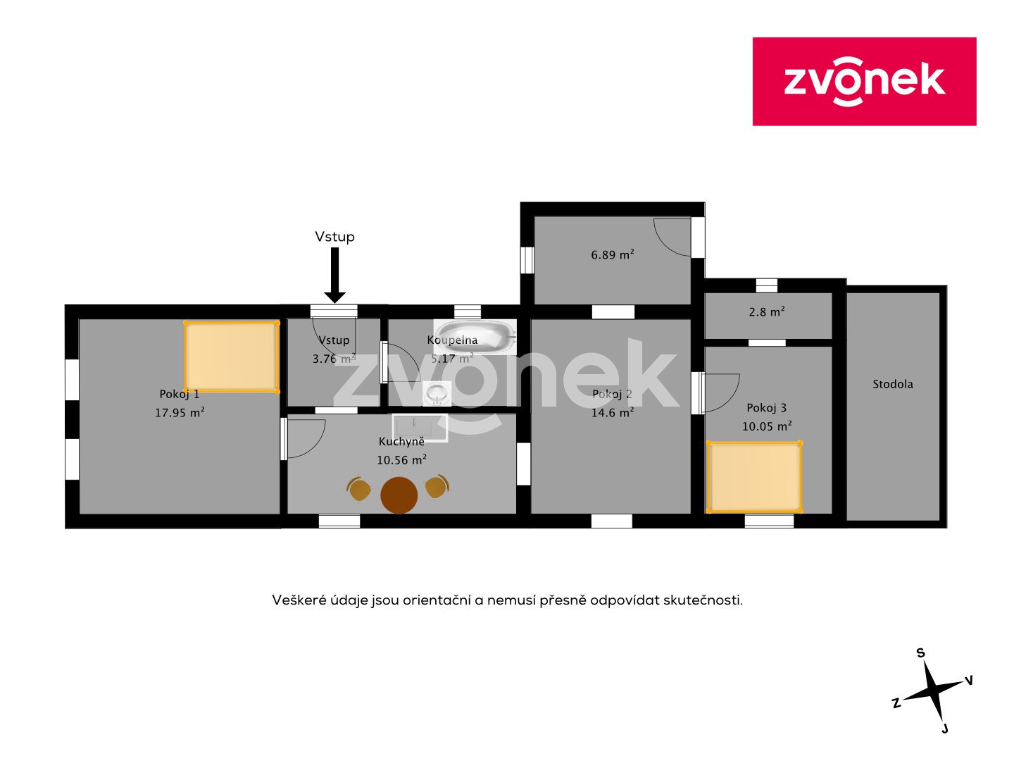 Nabízíme k prodeji rodinný dům o dispozici 4+1 v obci Lhotsko, nedaleko Vizovic a Zlína. Dům stojí na pozemku o výměře 379 m², z toho je zastavěná plocha domu cca 90 m². Nemovitost je zajímavá svojí konstrukcí – polovina domu je dřevěná, polovina zděná, navíc k ní patří i malá stodola. Dům prošel částečnou rekonstrukcí: nová plastová okna s dvojsklem nové rozvody vody z mědi, včetně vlastní studny nové elektrické rozvody přípojka plynu je zavedena v koupelně je moderní podlahové topení nové podlahy Střecha je původní, kombinace betonové a pálené tašky. Odpad není napojen, je nutné vybudovat septik. Rekonstrukce domu není dokončená, je potřeba ji finalizovat dle vlastních představ nového majitele. Velkou výhodou je možnost rozšíření obytné plochy – půda je nezateplená, ale při rekonstrukci lze vybudovat další pokoj. Příjezd k domu je po obecním pozemku. Nemovitost je ideální pro ty, kdo hledají klidné bydlení s možností rekonstrukce a rozšíření v pěkném prostředí.