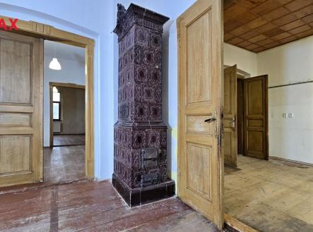 Nabízíme k prodeji vícegenerační secesní vilu na vlastním pozemku o velikosti 4965m2 v Liběchově. Vila byla postavena v roce 1911 jako rodinné sídlo. Současná dispozice nabízí čtyři podlaží. Suterén - jedná se o sklepní prostory, kde se nachází kotelna s kotlem na tuhá paliva s expanzními nádržemi a další prostory o celkové ploše cca 240m2. Obytná část domu o velikosti 480m2 zahrnuje dvě patra. V každém patře je bytová jednotka o dispozici 4+1 s vlastním sociálním zázemím. Čtvrté patro tvoří prostorná půda. Ve vile byly zachovány původní prvky jako pískovcové schodiště se zdobeným kovaným zábradlím, původní zdobené dlažby, dvoukřídlé interiérové dveře s ozdobným kováním, dřevěné balkóny, štíty a římsy. Nemovitost je určená k rekonstrukci podle požadavků nového majitele, nedávno byla provedená rekonstrukce střechy, dřevěných balkónů, štítů a říms a výměna oken. Na pozemku o velikosti 4965m2 se nachází dřevěná pergola a studna. Tato secesní vila je skvělým příkladem reprezentativní stavby. Její propracovaná architektura s detaily ukazuje, že dům byl navržen s důrazem na eleganci i praktickou funkci což odpovídá trendům vilové výstavby v této oblasti z počátku 20. století.