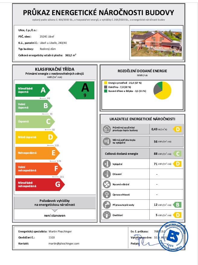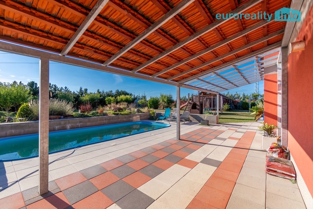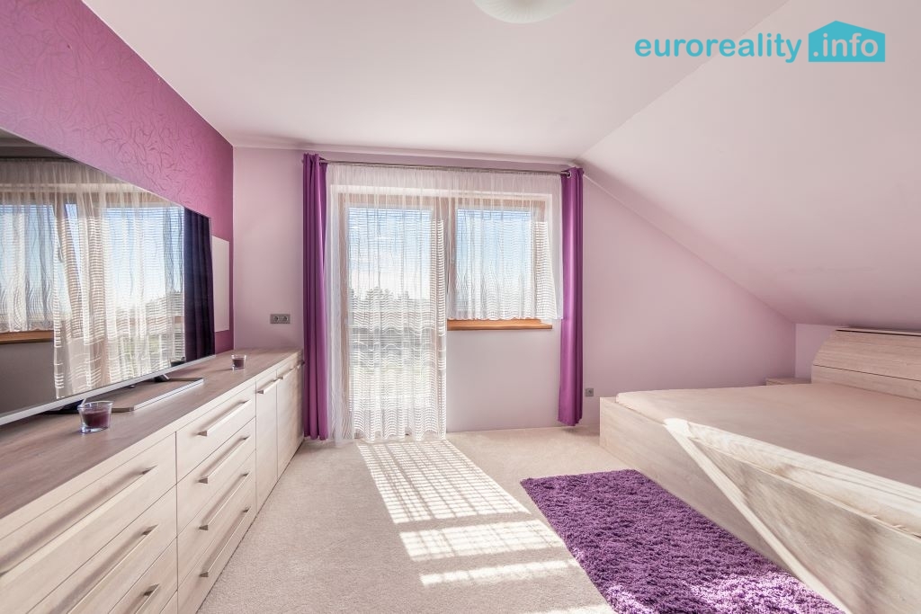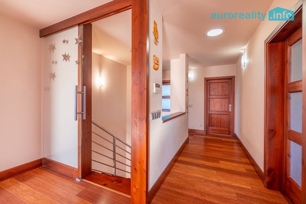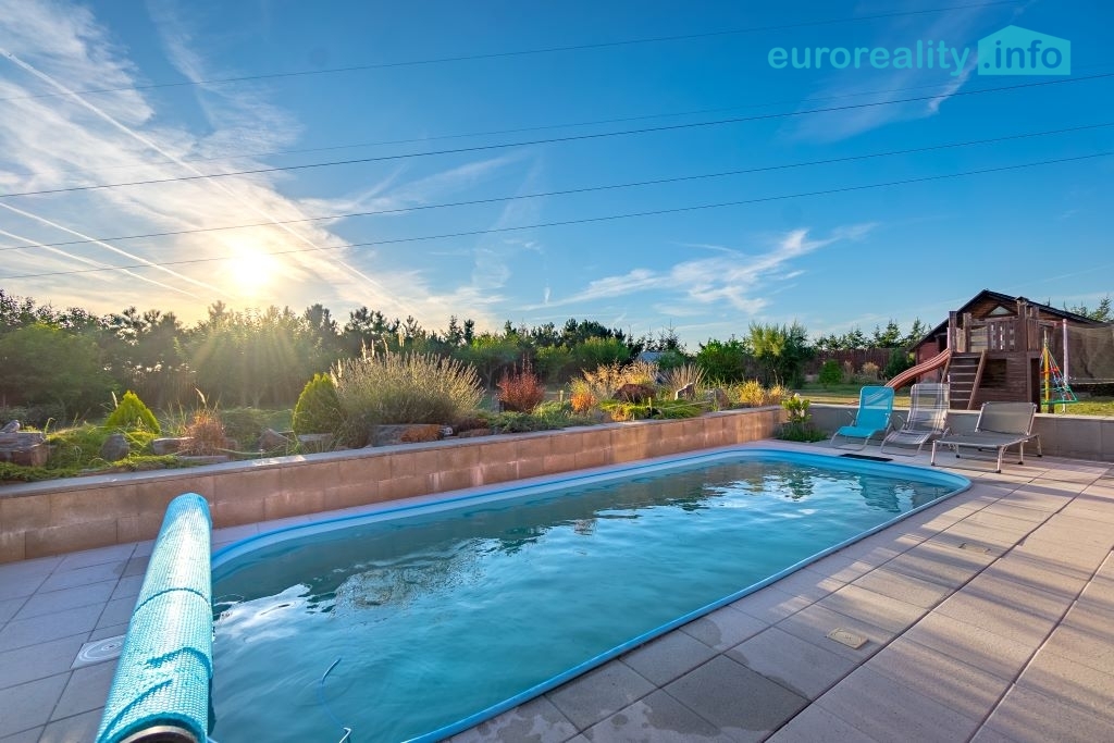 Prodej rodinného domu 5+kk se zahradou, bazénem, dílnou a výjimečnými možnostmi parkování – Libeř, Praha-západ Exkluzivně nabízíme k prodeji prostorný rodinný dům 5+kk s obytnou plochou 270 m², doplněný o dílnu (80 m²), garáž (30 m²) a udržovanou zahradu o výměře 1 718 m². Dům se nachází v klidné části obce Libeř – Libeň (Praha-západ) a představuje ideální spojení komfortního rodinného bydlení, podnikání i vícegeneračního využití. Hlavní předností domu jsou mimořádné možnosti parkování. K dispozici je garáž pro dvě vozidla, krytá stání pod přístřeškem a zpevněné plochy kolem domu s kapacitou minimálně pro osm aut. Parkovat lze také v prostorné dílně, což ocení zejména majitelé veteránů nebo řemeslníci. Takto rozsáhlé parkovací zázemí je v této lokalitě zcela ojedinělé. Dům byl kolaudován v roce 2010, je postaven z kvalitních materiálů a ve výborném technickém stavu. Využívá moderní technologie – tepelné čerpadlo, fotovoltaické panely a krbová kamna, díky nimž je provoz domu velmi úsporný. Dispozice přízemí tvoří vstupní chodba, koupelna se sprchou a WC, vstup do garáže, prostorný obývací pokoj s kuchyní a jídelnou se vstupem na zahradu a pracovna s přístupem do dílny (nyní truhlárna, možnost úpravy na obytný prostor). V podkroví se nachází čtyři pokoje, ložnice s šatnou, koupelna s vanou a WC a technická místnost. Součástí je také velká zateplená půda, kterou lze využít jako hernu, úložné prostory nebo další obytnou část. Zahrada o výměře 1 718 m² je rovinatá, oplocená a pečlivě udržovaná. Najdete zde venkovní bazén, okrasné jezírko s rybami, skalku, ovocné i okrasné stromy a keře. Součástí je zahradní domek a samonosná pojezdová vrata pro pohodlný vjezd. Technické parametry: Obytná plocha: 270 m² Dílna: 80 m² Garáž: 30 m² Rok kolaudace: 2010 Vytápění: tepelné čerpadlo + krbová kamna Fotovoltaika: úsporný provoz Elektřina: 220/380 V Voda: vlastní vrt (vodovod na hranici pozemku) Odpad: jímka Energetická třída: A Součástí prodeje je i vybavení domu Lokalita Libeř – Libeň nabízí klidné bydlení s výbornou dostupností do Prahy (cca 18 minut autem). V místě je základní občanská vybavenost, příroda i možnosti volnočasových aktivit. Tento dům zaujme každého, kdo hledá prostorné, moderní a úsporné bydlení s nadstandardními možnostmi parkování, dílnou a zahradou s plným soukromím. Dům je ve výborném stavu a připraven k okamžitému nastěhování bez nutnosti dalších investic. Pro podrobnější informace nebo domluvení prohlídky kontaktujte makléře.