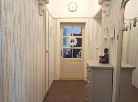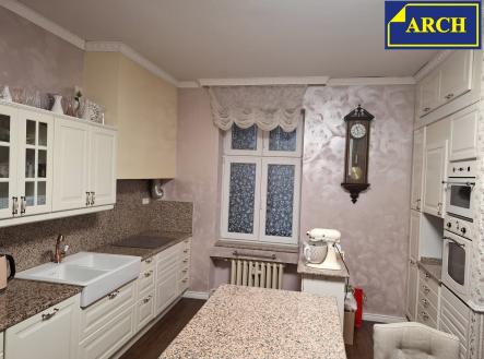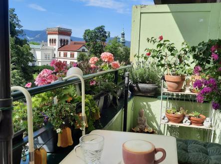 Byt 3+1 (110 m²) s lodžií (3,8 m²) ve zděném historickém domě (postaveném kolem r. 1920) v centru Liberce, s krásným výhledem do parku Clam-Gallasů. Dům je postavený v Gutenbergově ul. vedle hotelu Zlatý lev, tzn. v centru města (350m od radnice) a přitom v klidném prostředí. Gutenbergova ul. je slepá - je v ní pouze uzavřené parkoviště hotelu a parkovací stání pro rezidenty. Výhled z lodžie (i ze všech 3 pokojů) je nejen na park, ale také na liberecký zámek, za kterým se schovává Ještěd. Na poslední fotografii uvedené v inzerátu je výhled z terasy přístupné z půdních prostor domu. Dispozice bytu: 1.pokoj 20,8m², obýv. pokoj 28,3m² + lodžie 3,8m², 3.pokoj 18,1m², kuchyň s jídelnou 23,6m², koupelna 8,8m², předsíň 10,6m² a komora 1,55m². Byt je umístěný ve 2.patře v domě s výtahem. Všechny pokoje jsou orientované na jih - s výhledem do parku. Kuchyň a koupelna mají okna na sever - do malého málo udržovaného dvora (okna do dvora jsou matná - neprůhledná). Kuchyňská linka má 3 části: 1.část s el. indukční varnou deskou, porcelánovým dvoudřezem a myčkou, 2.část s několika skříňkami, horkovzdušnou troubou a mikrovlnnou troubou. 3.část tvoří velký servírovací stůl. Všechny 3 části mají pracovní desky i obklady z růžové španělské žuly. Koupelna je vybavená rohovou vanou, umývadlem a sprchovým koutem, který je obložený zelenou mozaikou. Cestovatelé možná ocení, že umývadlo a dekory jsou ručně vyráběné, dovezené z Mexika. Za polopříčkou (v prostoru za pračkou) je umístěné závěsné WC - kompletně obložené běžným obkladem. Podlahy v kuchyni, v předsíni a ve 2 pokojích jsou plovoucí. V posledním pokoji je položeno PVC, v koupelně je keramická dlažba. Dveře jsou většinou původní dřevěné, z masivu, s obložkovými zárubněmi. Okna do parku jsou původní dřevěná, okna do dvora jsou nová plastová, s matnými skly. V domě je proveden rozvod ústředního topení z domovní plynové kotelny. Ohřev teplé užitkové vody zajišťuje plynová karma. K bytu přísluší sklepní kóje 7,1m² (kterou současný vlastník nevyužívá) a užívání části půdního prostoru.
