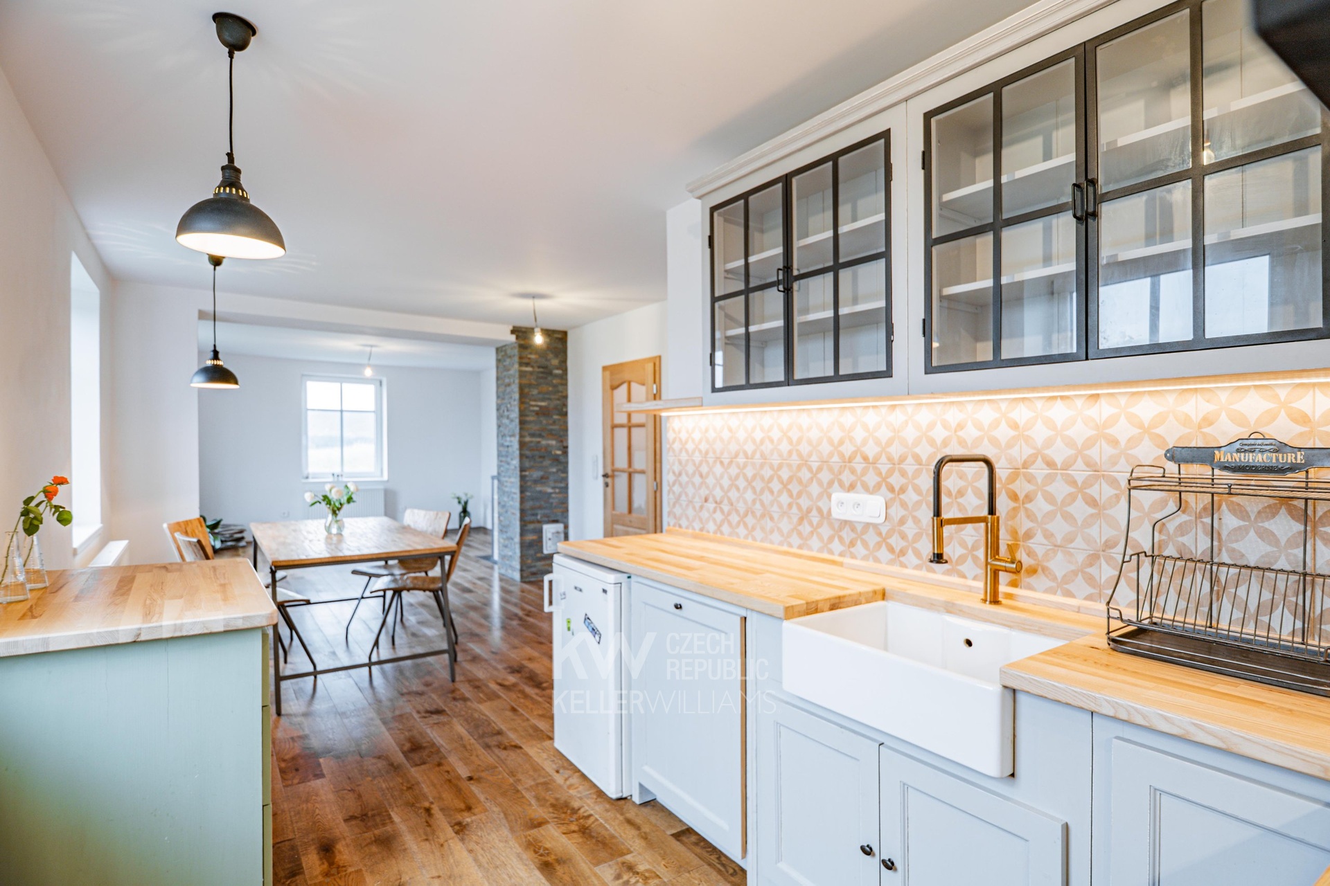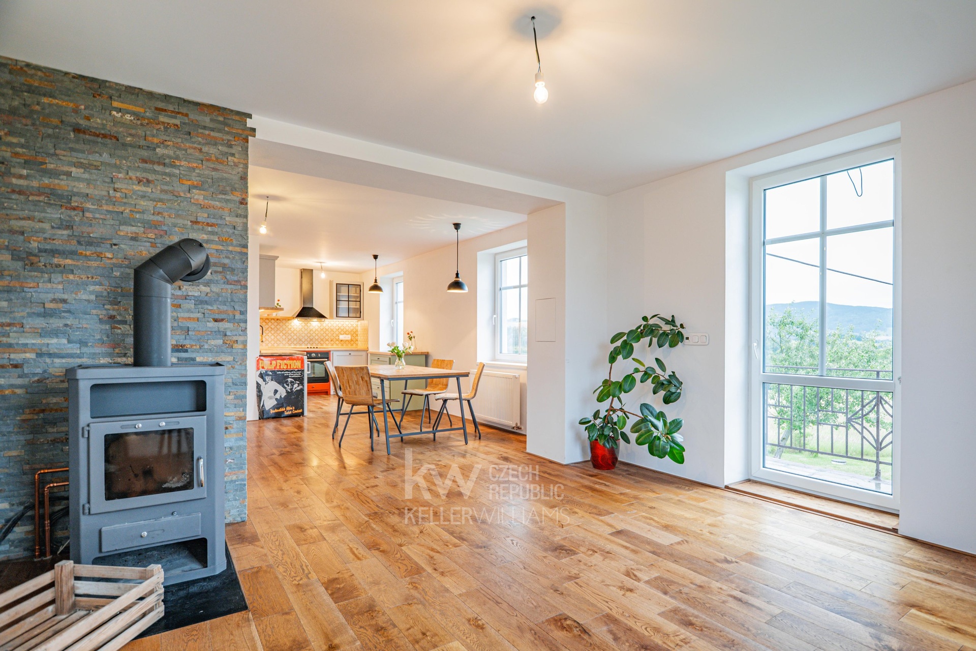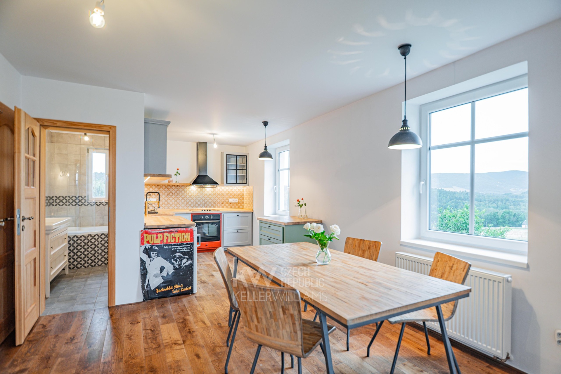 Přáli byste si rodinný dům v romantické přírodě kousek od Liberce? Nebo jste milovník zimních sportů a líbilo by se Vám horské útočiště? Nebo hledáte investiční nemovitost s několika bytovými jednotkami? Nebo by se Vám líbila kombinace něčeho zmíněného? Tak jste tu tedy správně. Dnes pro Vás mám rustikální vilu z roku 1938 nacházející se u Mojžíšova pramene. Vila byla postavena česko-německou rodinnou, dle návrhů německých architektů a je vystavěna z cihel. Dům byl kompletně a citlivě zrekonstruován a k dokončení rekonstrukce došlo před dvěma lety. Dům se nachází téměř na samotě přesto pouhých 10min. do centra Liberce. Pozemek je na velmi žádaném a oblíbeném místě, v populární lokalitě Vratislavic nad Nisou s vyhlídkami na Liberec a Ještěd, vstupem do okolních lesů směrem na vyhlídku Císařský kámen a kousek nad domem jsou dokonce vidět i Krkonoše. Romantické prostředí s přilehlými loukami a lesy nabízí velmi klidné bydlení, bez přímých sousedů avšak s velmi dobrou dostupností do centra Liberce, Jablonce nebo s pohodlným napojením na Prahu (ta je cca 55 min autem). Koupat se můžete například ve Veseckém rybníku (1km na kole). Jedná se o velmi unikátní prostor, vzhledem k jeho poloze a okolí. Rekonstrukce obsahovala rozvody elektřiny, vody, topení, podlahové topení v přízemí, výměna oken, podlahy, koupelny, kuchyně, vyvložkovaný komín s dvěma průduchy a novou čistírnu odpadních vod dimenzovanou pro 8 osob. Je zde i příprava rozvodů a nádrže na dešťovou vodu na splachování a zalévání. Použity kvalitní materiály, italská dlažba a keramika, dřevěné podlahy z masivu, francouzské kuchyně. Vše designováno s ohledem na unikátnost domu a jeho přirozenou polohu v rámci prostoru kde se nachází. Celý dům je podsklepen (cca. 70m2), sklepní prostory se využívají jako kotelna, prádelna a sklad. Nyní se v domě nachází tři byty o dispozicích 1kk, 2kk a 3kk. Předěl mezi přízemím a horním patrem lze vyřešit elektrickou roletou. Na pozemku 1080m2 je připravená voda a elektřina na saunu, bazén, či letní kuchyň. Dále se zde nachází samostatná garáž (20m2) a hrací prvky pro děti. Na domě je bezpečnostní kamera a elektrické rozvody na další kamery v každém rohu domu. Pro virtuální prohlídku domu mě kontaktujte a na následnou prohlídku se budu těšit.