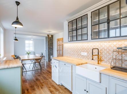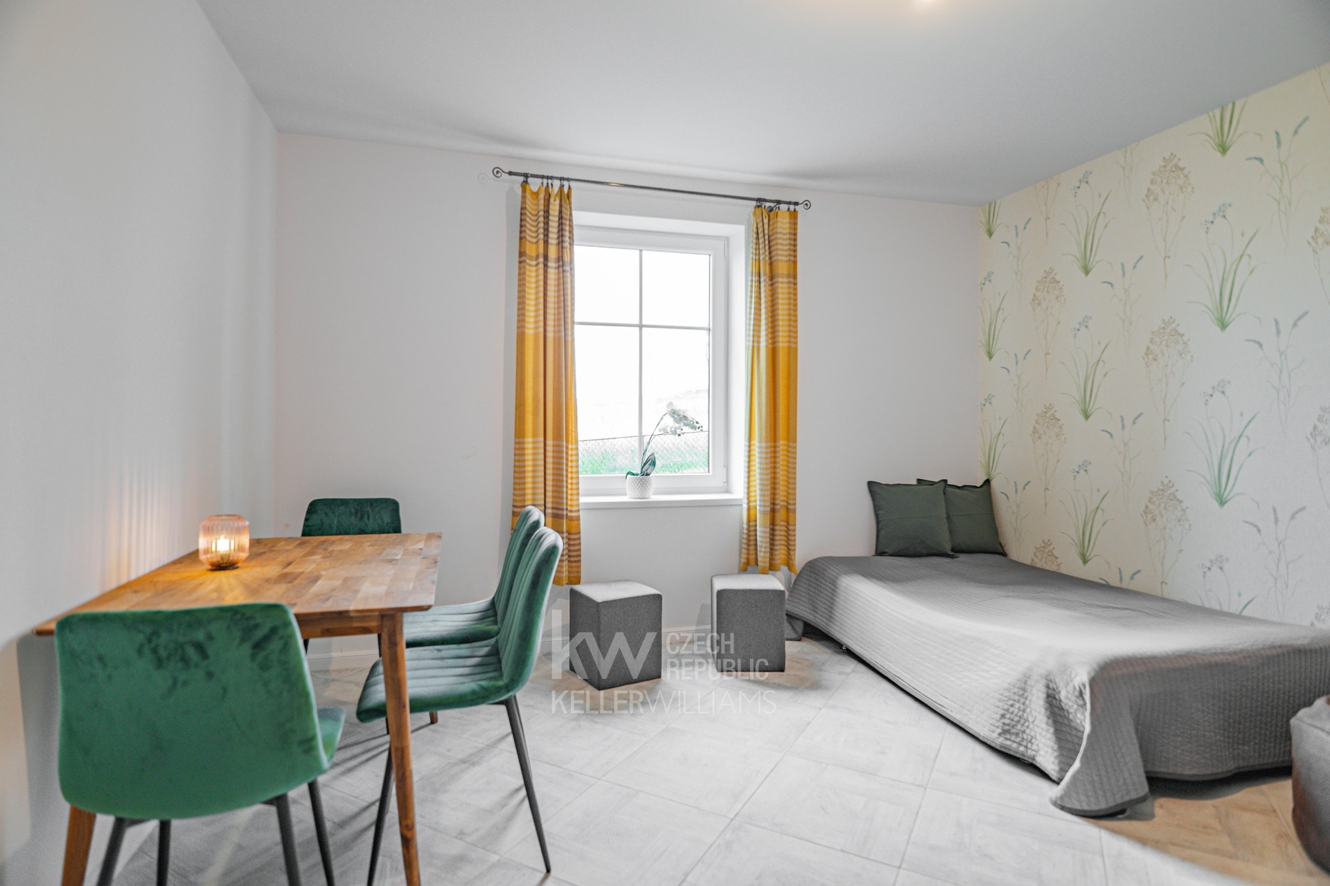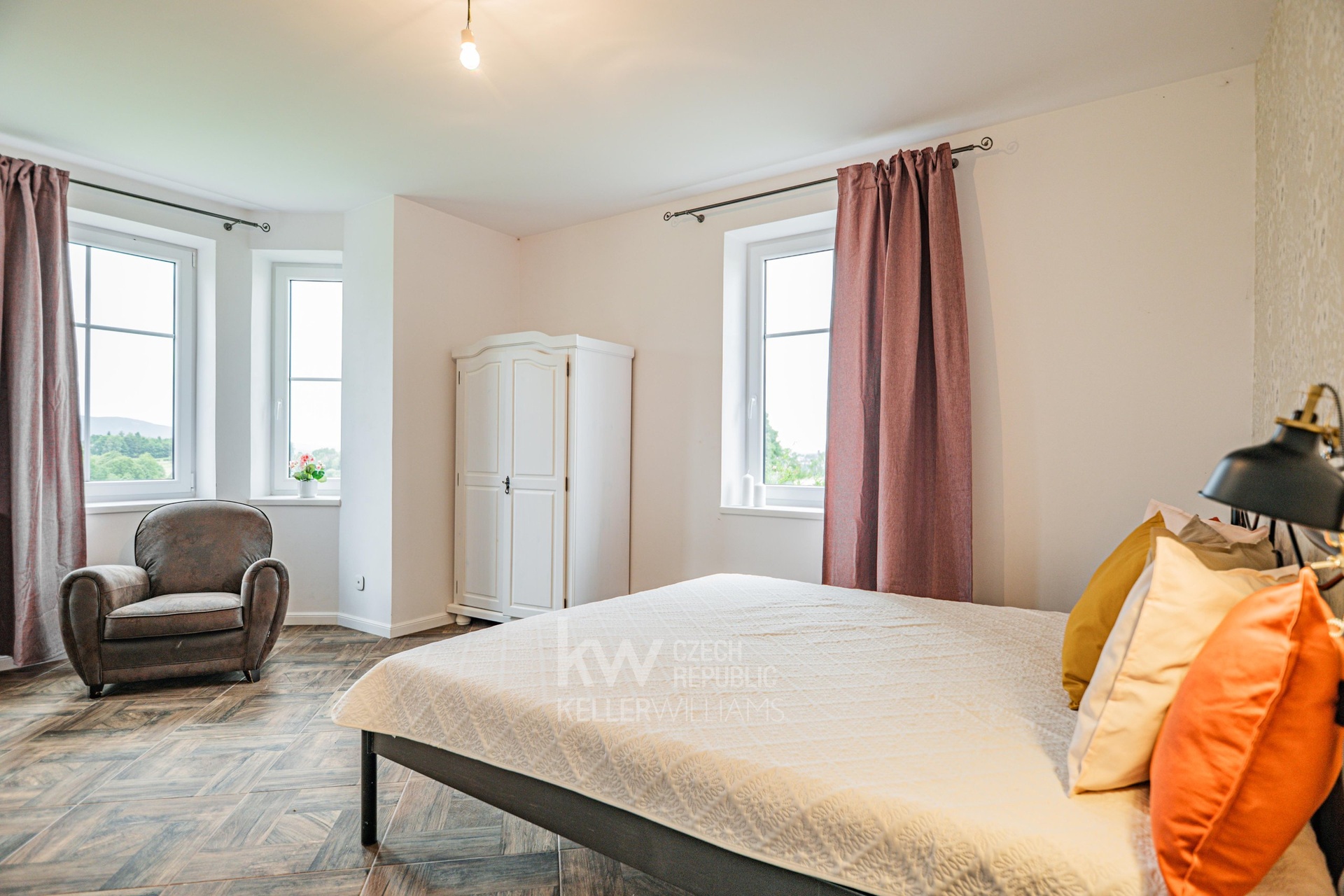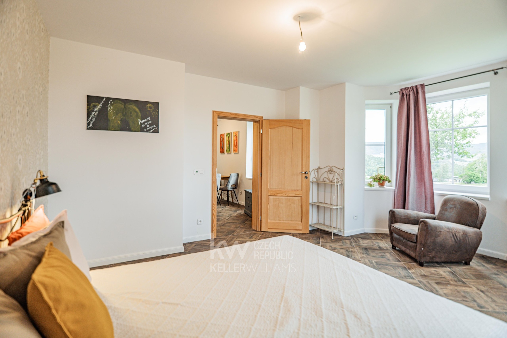 Přáli byste si rodinný dům v romantické přírodě kousek od Liberce? Nebo jste milovník zimních sportů a líbilo by se Vám horské útočiště? Nebo hledáte investiční nemovitost s několika bytovými jednotkami? Nebo by se Vám líbila kombinace něčeho zmíněného? Tak jste tu tedy správně. Dnes pro Vás mám rustikální vilu z roku 1938 nacházející se u Mojžíšova pramene. Vila byla postavena česko-německou rodinnou, dle návrhů německých architektů a je vystavěna z cihel. Dům byl kompletně a citlivě zrekonstruován a k dokončení rekonstrukce došlo před dvěma lety. Dům se nachází téměř na samotě přesto pouhých 10min. do centra Liberce. Pozemek je na velmi žádaném a oblíbeném místě, v populární lokalitě Vratislavic nad Nisou s vyhlídkami na Liberec a Ještěd, vstupem do okolních lesů směrem na vyhlídku Císařský kámen a kousek nad domem jsou dokonce vidět i Krkonoše. Romantické prostředí s přilehlými loukami a lesy nabízí velmi klidné bydlení, bez přímých sousedů avšak s velmi dobrou dostupností do centra Liberce, Jablonce nebo s pohodlným napojením na Prahu (ta je cca 55 min autem). Koupat se můžete například ve Veseckém rybníku (1km na kole). Jedná se o velmi unikátní prostor, vzhledem k jeho poloze a okolí. Rekonstrukce obsahovala rozvody elektřiny, vody, topení, podlahové topení v přízemí, výměna oken, podlahy, koupelny, kuchyně, vyvložkovaný komín s dvěma průduchy a novou čistírnu odpadních vod dimenzovanou pro 8 osob. Je zde i příprava rozvodů a nádrže na dešťovou vodu na splachování a zalévání. Použity kvalitní materiály, italská dlažba a keramika, dřevěné podlahy z masivu, francouzské kuchyně. Vše designováno s ohledem na unikátnost domu a jeho přirozenou polohu v rámci prostoru kde se nachází. Celý dům je podsklepen (cca. 70m2), sklepní prostory se využívají jako kotelna, prádelna a sklad. Nyní se v domě nachází tři byty o dispozicích 1kk, 2kk a 3kk. Předěl mezi přízemím a horním patrem lze vyřešit elektrickou roletou. Na pozemku 1080m2 je připravená voda a elektřina na saunu, bazén, či letní kuchyň. Dále se zde nachází samostatná garáž (20m2) a hrací prvky pro děti. Na domě je bezpečnostní kamera a elektrické rozvody na další kamery v každém rohu domu. Pro virtuální prohlídku domu mě kontaktujte a na následnou prohlídku se budu těšit.