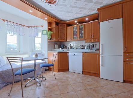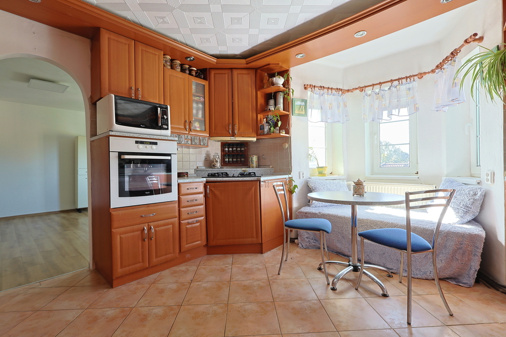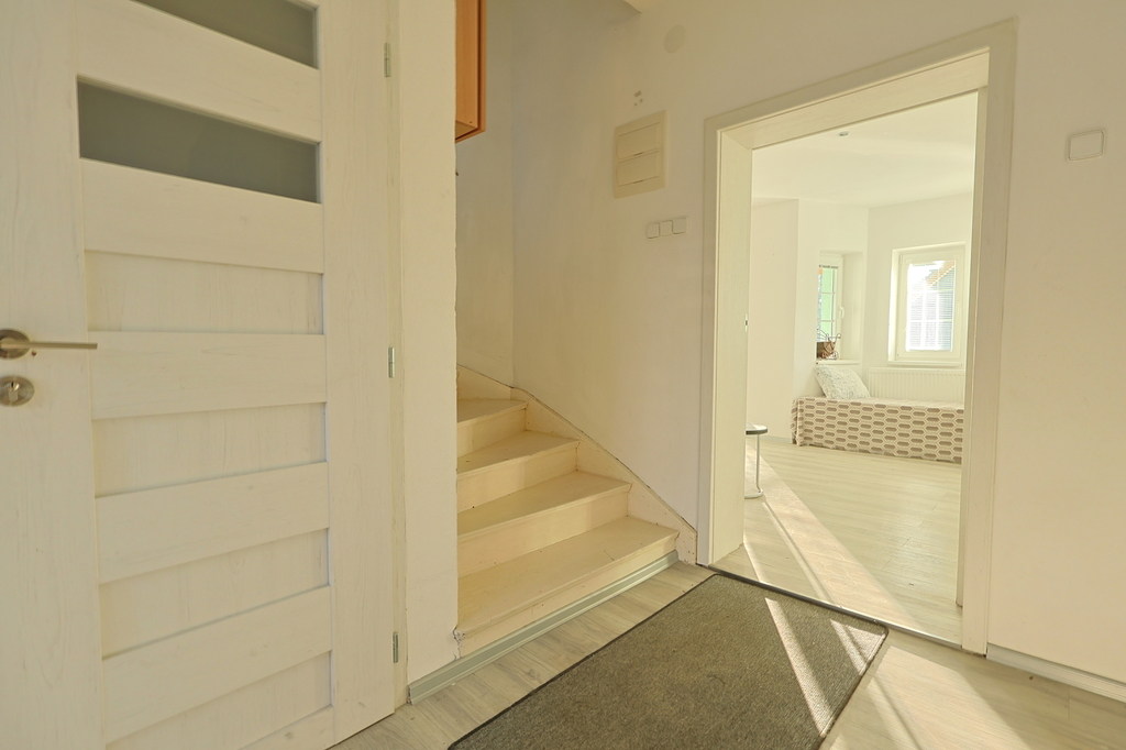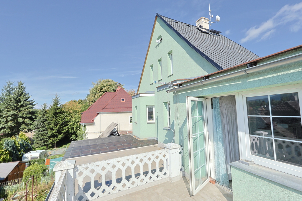 Ve výhradním zastoupení vám nabízíme k prodeji pěkný a prostorný rodinný dům ve vyhledávané lokalitě Staré Pavlovice v Liberci, v ulici Jiráskova.Jedná se o dvoupodlažní, podsklepený objekt s obytným podkrovím, samostatnou garáží a zahradou. Dům je v dobrém technickém stavu a nevyžaduje a aktuálně nevyžaduje žádné investice k tomu, aby mohl být pohodlně obýván, je tak připravený k okamžitému nastěhování. Díky své dispozici je vhodný jak pro komfortní bydlení jedné rodiny, tak i pro dvougenerační bydlení. Dispozice 1. podlaží (byt 4+kk) • prostorný obývací pokoj s kuchyňským koutem a přímým vstupem na terasu • ložnice s pracovnou a vstupem na terasu • ložnice s francouzským oknem • koupelna se sprchovým koutem + wc • terasa s výhledem do zahrady • pod terasou dílna (suterénní místnost vhodná pro kutily) 2. podlaží (byt 2+1) • kuchyň a dva pokoje • koupelna s vanou • terasa s krásným výhledem na Staré Pavlovice Podkroví • další místnost vhodná jako pokoj či pracovna • prostory pro uskladnění věcí Suterén • prostorné podsklepení domu poskytuje dostatek úložného prostoru • dílna pod terasou prvního podlaží Technické údaje • zastavěná plocha 156 m² ( 135m² dům, 21 m² garáž), zahrada 240 m² • smíšená konstrukce (kámen,cihla) • plastová okna po celém domě • elektřina v mědi vyjma podkroví, voda v plastu • dvouzónový plynový kondenzační kotel zajištuje vytápění domu a ohřev vody • v 1.NP kachlová kamna bez výměníku (komín je vyvložkovaný) • obecní vodovod i vlastní studna, odpad do kanalizace • střecha po rekonstrukci: kanadský šindel (šikmá část) + asfaltová hydroizolace IPA (plochá část) Lokalita Staré Pavlovice patří mezi nejvyhledávanější lokality Liberce. V blízkosti naleznete veškerou občanskou vybavenost: • lékaři, obchody, školy a školky • sportoviště – tenisové a fotbalové hřiště • fotbalový stadion Slovanu Liberec v pěší vzdálenosti • koňské stáje, cyklostezky, zeleň a přírodu pro volný čas Energetická třída G neodpovídá skutečnosti, energetický štítek je ve výrobě. V případě dotazů či vašeho zájmu o prohlídku mě neváhejte kontaktovat.