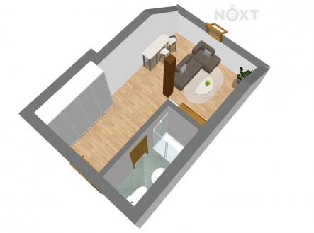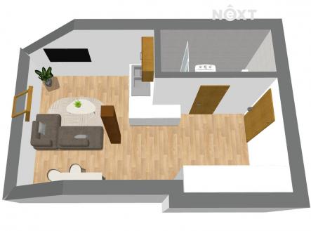 Nabízíme k prodeji byt o dispozici 1+kk s celkovou plochou 21,7 m², který se nachází v podkroví cihlového bytového domu. Byt je dispozičně řešen jako jeden otevřený obytný prostor s kuchyňským koutem a obývací částí. Součástí je koupelna vybavená sprchovým koutem, umyvadlem a toaletou. Díky střešnímu oknu působí interiér světlým a útulným dojmem, přičemž dřevěný trám dodává prostoru charakter typický pro podkrovní bydlení. Na podlahách je položena plovoucí podlaha, vytápění je zajištěno elektrickými přímotopy. Byt je vhodný k okamžitému užívání, zároveň však nabízí možnost rekonstrukce a úprav dle představ nového majitele. Nemovitost je ideální jako startovací bydlení pro jednotlivce či pár, případně jako investiční příležitost k dlouhodobému pronájmu. Pro komunikaci uvádějte evidenční číslo zakázky N115678.