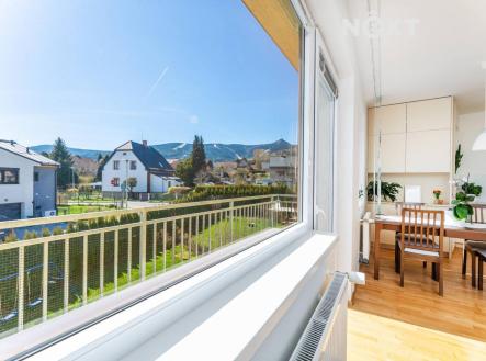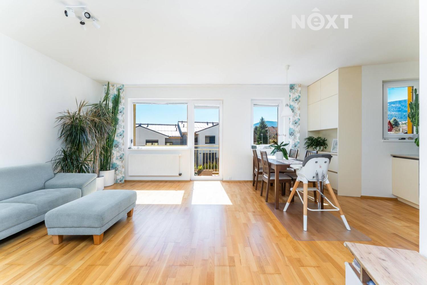 Naše společnost Vám exkluzivně nabízí prodej slunného bytu s garáží v Liberci, část Horní Hanychov, v ulici Irkutská s krásnými výhledy. Prostorný byt s dispozicí 3KK v osobním vlastnictví vč. balkónu (5,76m2) má dle prohlášení vlastníka podlahovou plochu 111,8m2. Dispozice bytu: zádveří a vstupní chodba, obývací pokoj propojen s kuchyňským koutem a výstupem na balkón, wc, po schodech do patra, kde jsou 2 samostatné pokoje a koupelna s vanou. Vytápění bytu a ohřev teplé vody zajišťuje společný plynový kotel pro každý blok. Výhodou bytu je možnost předělat na původní dispozici 4KK. Byt je velmi pěkně zařízen, má dřevěné podlahy, kuchyň na míru s pravou kamennou deskou. Architektonický koncept bytového domu pouze s pár byty vytváří bezpečné prostředí pro rodinu, v každé budově (pouze 4 byty) můžete očekávat klid a soukromí, před domem je dětské hřiště a dostatek zelené plochy. Měsíční náklady na bydleni jsou 5925Kč včetně fondu oprav, lokalita je ideální pro rodiny s dětmi i jednotlivce, kteří hledají klidné bydlení v blízkosti veškeré občanské vybavenosti, snadná dostupnost do centra města i do přírody. Kromě parkovaní v garáži (22m2) je možnost bezproblémové parkování na pozemku před domem. Byt bude volný ihned v říjnu 2026, po dohodě možná i dříve. Pokud vás nabídka zaujala, neváhejte mě kontaktovat, ráda Vás bytem osobně provedu, po dohodě možné i o víkendu. Pro komunikaci uvádějte evidenční číslo zakázky N117323.