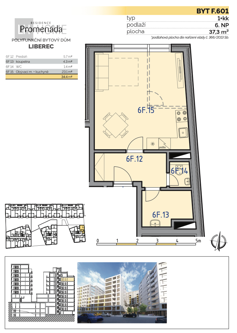 Nabízíme prodej bytu 2+kk o výměře 53,46 m2 vč. příček + balkón 4,4 m2 v projektu Residence Promenáda. Byt se bude nacházet ve 3. nadzemním podlaží. Byt bude orientovaný na jižní stranu. Celkem bude v budově B 9. nadzemních podlaží a 3. podzemní podlaží, kde budou garážová stání. V 1. a 2. nadzemním patře budou komerční prostory. Součástí kupní ceny jsou vinylové podlahy, keramické obklady a dlažby v koupelně a na wc. Vana, skříňka s umyvadlem a zrcadlem, topný žebřík, oddělená toaleta s umyvadélkem, Interiérové dveře s obložkami - bílé. Součástí každého bytu bude videotelefon. Ke každé bytové jednotce je nutné zakoupit garážové stání a sklep. Nízké provozní náklady garantuje energetický štítek B. Předpokládaný termín zahájení výstavby 3Q 2024, předpokládaný termín dokončení 4Q 2027. Byt je možné zakoupit do osobního nebo družstevního vlastnictví. Všechny naše projekty je možné vidět na našich webových stránkách. Celkem bude v tomto novém projektu 247 nových bytů o dispozicích 1+kk, 2+kk a 3+kk. Na prvních 50 bytů bude poskytnuta sleva ve výši 10%. Nabídková cena je před uplatněním slevy. Více informací již brzy na našich webových stránkách. V případě bližších informací jsme k dispozici. Parcelní číslo 4064/3