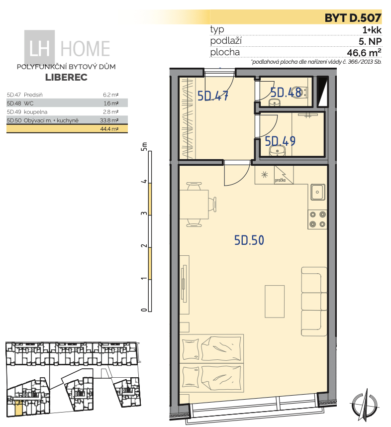 Prodej bytu, 1+kk, 46 m²