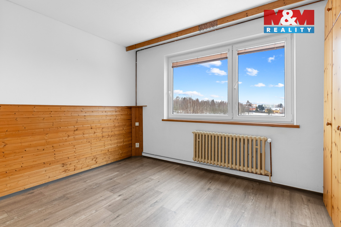 Hledáte bydlení, které má prostor, světlo a nízké náklady? Pak zbystřete! Nabízíme byt původně 2+1, velmi chytře upravený na prostorné 3+kk, ve 4. patře (poslední patro). Obývací pokoj s kuchyní je orientovaný na jih, dva další pokoje na sever – ideální kombinace světla a klidu. Byt nabízí mnoho úložných prostor díky vestavěným skříním, lodžii i sklepní kóji cca 4,5 m². Velkou výhodou je vlastní plynové vytápění a ohřev vody, což znamená nízké měsíční náklady. Kotel je umístěn v komoře vedle bytu, která je společná pro tři byty a slouží i jako sušárna či odkládací prostor. Parkování přímo před domem – pro svého plechového miláčka vždy najdete místo. Za domem je společná zahrada na sušení prádla i letní posezení se sousedy třeba u grilu. Hned za domem louka, kousek do Sportovního areálu Vesec a na dálnici směr Praha co by kamenem dohodil. Těším se na prohlídky.