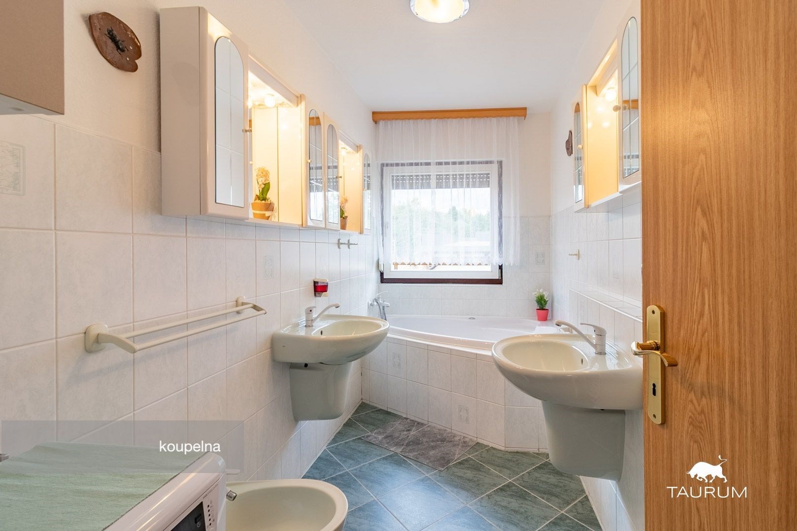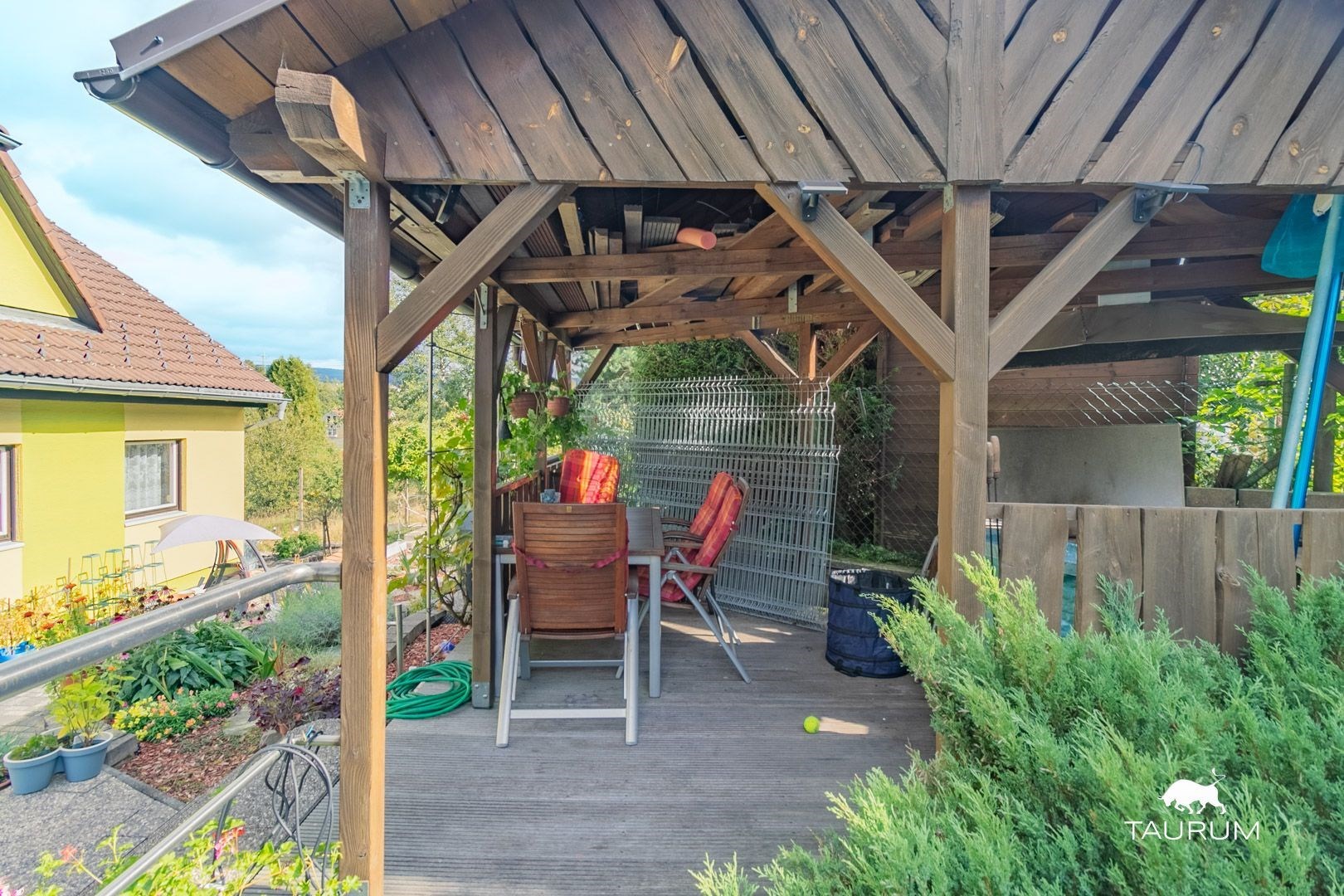 Představuji vám k prodeji moc pěkný rodinný dům se zahradou a celou řadou příslušenství v Liberci, v jeho klidné části obklopené bydlením v rodinných domech ve Vesci. Ucelenou prezentaci domu můžete shlédnout na odkaze, který je součástí video prohlídky. Základní informace: > 4+1 (+ podkroví připravené pro vestavbu) > užitná plocha 203 m2 (1NP 35m2, 2NP 98 m2, podkroví 70,2 m2) uvedené výměry jsou orientační > pozemek 512 m2 > kombinace pálené cihly a dřevostavby > střecha KM Beta > krovy odpovídající 4. sněhové oblasti > technický suterén s garáží, kuchyní a sociálním zařízením > okna dřevěná eurookna, vakuovaná s 2 skly (v technickém suterénu jsou okna plastová Vekra s 2 skly z roku 2014) > elektřina 230/400 V (3x25, měď) > zastřešená pergola > zahradní domek > zapuštěný bazén > obecní vodovod a kanalizace > ohřev vody, topení plynový kondenzační kotel + zásobník 300 l + solární panely (samostatné topné okruhy), krbová kamna > elektřina 230/400V (měď) Dům byl zkolaudovaný v roce 2000 a je ve velice pěkném stavu. Spodní část domu je postavena z pálených cihel a zateplena, u 2NP s podkrovím se jedná o zateplenou dřevostavbu. Střecha má dřevěný krov, krytinou je betonová taška KM Beta a je částečně zateplena. Hlavním vchodem se dostanete do 1NP, kde najdete tzv. technický suterén, kde je k dispozici prostorná garáž s komorou, malá koupelna se sprchovým koutem, umyvadlem a WC, kuchyně se spižírnou a prostorná předsíň. Odsud se po dřevěném jasanovém schodišti dostanete do 2NP, kde je hlavní obývací prostor. Zde se po levé straně nachází prostorná koupelna s vanou, dvěma umyvadly a bidetem, dále pak ložnice a další dva pokoje. Po pravé straně je pak spojovací místnost mezi obývacím pokojem a kuchyní, s jídelním koutem a s dalším vstupem do chodbičky, kde je k dispozici úklidová komora, samostatné WC a pak vstup na balkon lemující dům a další a poslední vstup do podkroví. Z obývacího pokoje směrovaného na příjemnou jižní stranu, je možné přes francouzské okno vstoupit do krásné zahrady, plné květů a zeleně. Součástí zahrady je krytá pergola s posezením, zapuštěný bazén s pískovou filtrací a solárním ohřevem. V zahradním domku pak schováte vše potřebné nářadí a náčiní. Sítě: Dům je napojen na obecní vodovod a kanalizace. Ohřev vody a topení zajišťuje plynový kondenzační kotel + zásobník a navíc solární panely. Topení má samostatné topné okruhy a navíc je možné na přitopení v chladnějších jarních či podzimních měsících využít krbová kamna. Lokalita: Vesec, kde se rodinný dům nachází, leží na jižním okraji města. Dům se nachází v zástavbě dalších rodinných domů, v klidné části města. Pokud hledáte klidné místo, kde můžete bez obav bydlet a relaxovat, zároveň v dosahu všeho potřebného a kompletní občanské vybavenosti, pak mi zavolejte nebo napište, domluvíme si prohlídku. Pro koupi domu Vám zajistím kompletní realitní a právní servis a v případě potřeby i výhodné financování hypotečním úvěrem. Uvedené výměry jsou orientační.