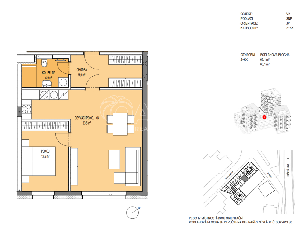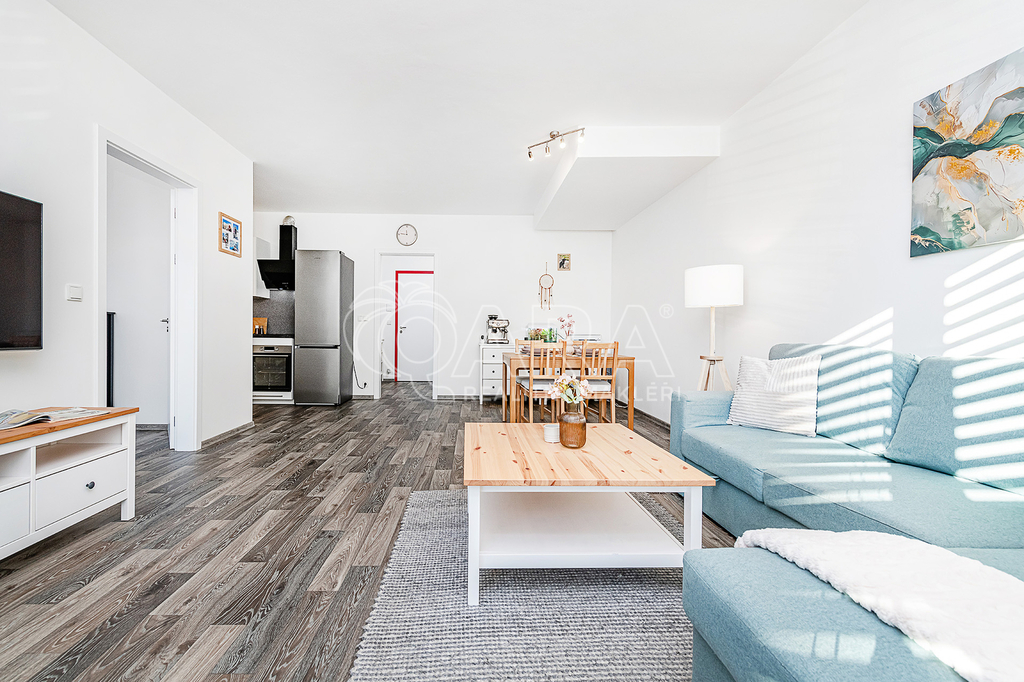 Nabízím k prodeji prostorný a světlý byt 2+kk o nadstandardní výměře 63 m² se sklepní kójí (+ cca 4 m²), umístěný ve 3. nadzemním podlaží moderní novostavby Rezidence Nábřeží z roku 2022, přímo v centru Liberce. Součástí prodeje je i venkovní parkovací stání, které uvidíte pod okny bytu. Byt se nachází ve spojovací části dvou věží rezidence, což zajišťuje snadný přístup z výtahu i z parkovacích pater. Byt je orientován na jihovýchod, díky čemuž je příjemně prosluněný během celého dopoledne. Okna s trojskly jsou vybavena venkovními elektrickými žaluziemi s dálkovým ovládáním, které zvyšují komfort i soukromí. Součástí bytu je kuchyňská linka s vestavěnou troubou, indukční varnou deskou a digestoří. Byt se prodává bez nábytku. Prostorná koupelna je spojena s toaletou a nabízí walk-in sprchový kout, závěsné WC, místo pro pračku i sušičku a topný žebřík. V bytě je zavedena pozemní TV anténa, rozvody pro internet a vlastní požární senzor. Dům je bezbariérový, disponuje společnou kočárkárnou a sklepní kójí umístěnou prakticky na stejném patře jako byt. Vytápění je řešeno dálkově z Teplárny Liberec. Energetická náročnost budovy je třídy B – velmi úsporná. Velkou předností je strategická poloha v centru města, přesto v klidné lokalitě s dostatkem zeleně. V pěší vzdálenosti 5 minut naleznete obchody, kavárny (přímo v domě), restaurace, MHD, vlakové i autobusové nádraží, parky, cyklostezku i centrum Babylon. V těsném sousedství byla dokončena nová liberecká „náplavka“ – revitalizovaný veřejný prostor podél řeky Nisy, který nabízí příjemné místo pro relaxaci, setkávání, posezení, umění a výhledy na řeku. Pokud máte k nabídce jakékoliv otázky, ráda Vám je zodpovím nebo se můžete na byt společně zajet podívat. Těším se na Vás!