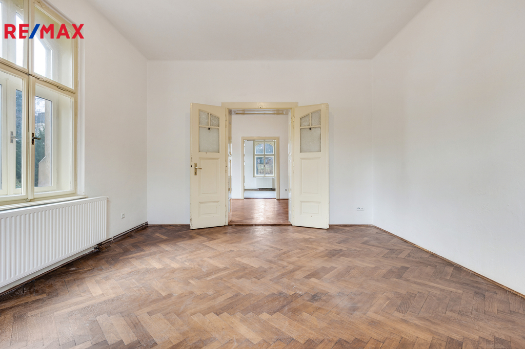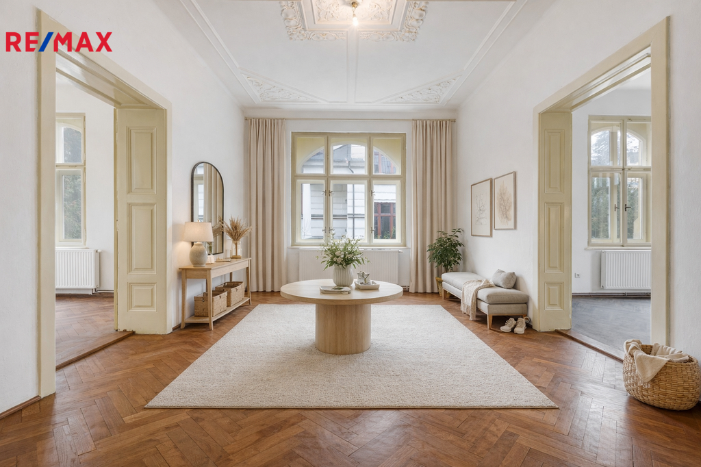 Nabízím k prodeji prostorný byt o dispozici 3+1, který se nachází ve 3. nadzemním podlaží krásného secesního domu z roku 1902 v ulici Vítězná, přímo ve Starém Městě v Liberci. Cihlový dům bez výtahu si dodnes zachoval svůj noblesní charakter a je průběžně udržovaný, přičemž do budoucna je plánována oprava fasády, která ještě více podtrhne jeho reprezentativní vzhled. Byt má dle prohlášení vlastníka výměru 114 m², nicméně dle vlastního měření nabízí užitnou plochu přibližně 116 m², což zajišťuje nadstandardní prostor a vzdušnost ve všech místnostech. K bytu dále náleží prostorný sklep v suterénu domu a také velkorysá půda, která poskytuje další praktické úložné prostory. Vlastníci bytů mohou navíc využívat rozlehlou zahradu náležející k domu, která nabízí příjemné místo pro letní posezení a grilování, ale zároveň umožňuje i parkování. Byt prošel v roce 2011 kompletní rekonstrukcí, v rámci které byly provedeny nové rozvody elektřiny, vyměněny vodovodní a odpadní stoupačky, instalována nová kuchyňská linka a koupelna a osazen nový plynový kotel sloužící k vytápění i ohřevu vody. Původní špaletová okna byla repasována, přičemž vnější skla jsou řešena jako dvojskla, což zajišťuje lepší tepelný i akustický komfort. Velkou předností bytu je zachování celé řady původních historických prvků, které mu dodávají jedinečnou atmosféru. V hlavní obytné místnosti vyniká původní štukovaný strop a zároveň zde byla instalována kamna, která dokážou vytopit téměř celý byt a vytvářejí velmi příjemnou, domáckou atmosféru. V celém bytě jsou zachovány původní secesní kliky na dveřích i kličky na oknech, ve většině místností se nacházejí původní dřevěné parkety a v koupelně je zachována část původních obkladů s krásným secesním reliéfem. Umístění domu je jednou z jeho největších předností. Nachází se téměř v samotném srdci Liberce, ve Starém Městě, v bezprostřední blízkosti významných kulturních památek. Hned vedle domu se nachází Oblastní galerie Liberec a ikonická budova bývalých Městských lázní, původně Lázně Františka Josefa I. Pouhé tři minuty chůze od domu je tramvajová zastávka, odkud se přímou linkou dostanete zhruba za dvacet minut do oblíbeného rekreačního a sportovního areálu v Liberci. Tento byt je ideální volbou pro zájemce, kteří hledají prostorné a charakterem výjimečné bydlení v centru města, spojující historickou atmosféru se současným komfortem a výbornou dostupností všech služeb i volnočasových aktivit.