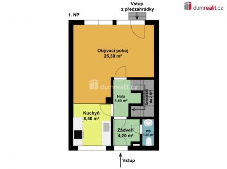 Nabízím k prodeji řadový dům o velikosti 4+1 s předzahrádkou, který se nachází v malebné lokalitě blízko přírody a zároveň nedaleko nájezdu na rychlostní silnici, což zajišťuje rychlý a pohodlný přístup do centra města, na Hrádek n/N. a do Prahy. Tento dům je zateplený (vyjma střechy) a vybaven plastovými okny, to přispívá k jeho energetické efektivitě a komfortu bydlení. Dům je krajní v bloku 4 řadových domů. Prošel průběžnou rekonstrukcí, která zahrnovala modernizaci rozvodů vody a elektroinstalace. Je napojen na vodovodní řád a kanalizaci zajišťuje čistička odpadních vod (ČOV). Pro vytápění a ohřev vody slouží nový kondenzační plynový kotel, který dodává příjemné teplo. Původní dispozice domu byla 4+1 s kuchyní umístěnou v 1. nadzemním podlaží. V současnosti je kuchyň i ve 2. nadzemním podlaží, což mění dispozici na 3 pokoje a 2 kuchyně. V 1. NP se nachází obývací pokoj s výstupem na předzahrádku, kuchyň a WC. Ve 2. NP je koupelna společná s WC, kuchyň a dva pokoje. Původně byl z jednoho pokoje vstup na balkón, který byl zrušen, avšak existuje možnost jeho opětovného vybudování. Dům má nízké měsíční náklady. Protože není vyhotoven energetický štítek uvádím PENB "G". V těsné blízkosti domu se nachází mateřská škola, což ocení zejména rodiny s dětmi. Dále je zde autobusová zastávka a prodejna potravin, která umožňuje pohodlné zajištění běžných nákupů. Toto místo je ideální pro rodiny s dětmi a majitele psích miláčků, kteří ocení blízkost přírody s rybníky možností procházek. Sportovci pak jistě využijí blízkost sportovních areálů Ještědu a Javorníku, které nabízejí široké možnosti pro aktivní trávení volného času. Přijďte se podívat na tuto jedinečnou nabídku, která spojuje pohodlí městského života s krásami přírody. Ev. číslo: 651922.