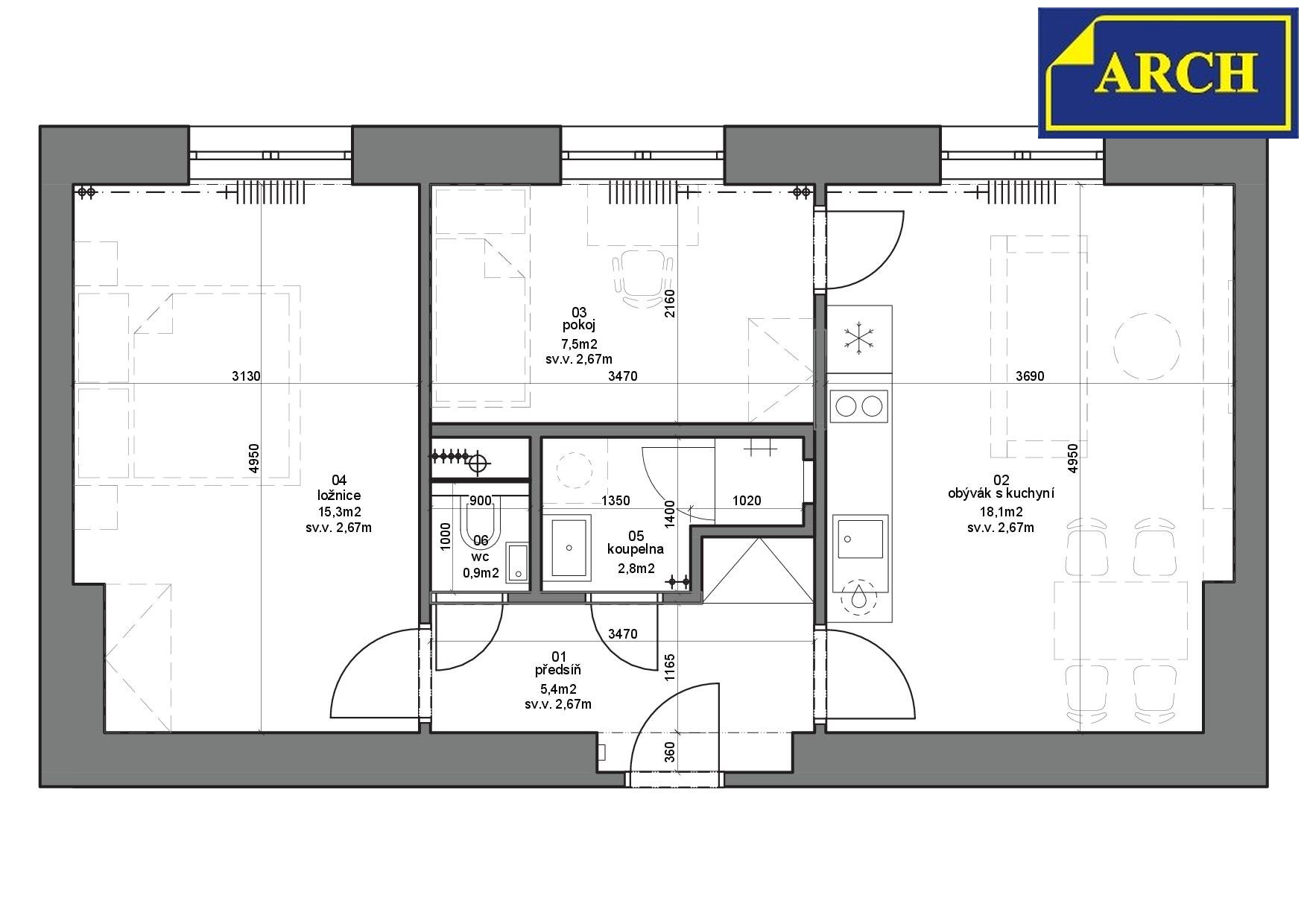 Byt 3+KK (50,0m²) bez balkonu, orientovaný na jih až jihozápad - je umístěný ve 2.patře v domě bez výtahu. Výhled v zimě je skrz koruny stromů až na Ještěd, ale v letních měsících je výhled pouze do korun listnatých stromů (lip), které rostou na protější straně ulice. Jedná se o atraktivní lokalitu vzdálenou asi 1,3km od centra města. Přilehlá komunikace je jednosměrná, klidná. Dům byl postaven v 60. letech 20. stol. Vybavení kuchyňského koutu tvoří kuchyňská linka s dřezem a dvouplotýnkovou el. varnou deskou, digestoř, horkovzdušná trouba, myčka nádobí, lednička a mraznička. V koupelně je sprchový kout, umývadlo s podumývadlovou skříňkou, zrcadlová skříňka s osvětlovací rampou a místo pro pračku. Koupelna je kompletně obložená až ke stropu. Závěsné WC je umístěno v samostatné místnosti s umývátkem. V předsíni je velká vestavěná skříň. Podlahy v koupelně a na WC tvoří keramické dlažby. V obývacím pokoji a v ložnici jsou renovované parkety, v předsíni a v dětském pokoji jsou podlahy vinylové. Dveře jsou hladké plné nebo prosklené (do pokojů), osazené do bílých obložkových zárubní. Okna jsou plastová, s izolačními dvojskly a se žaluziemi. Celý byt prošel od listopadu 2025 do ledna 2026 kompletní rekonstrukcí vč. rozvodů elektřiny. Obýv. pokoj s kuch. koutem má 18,1m², ložnice 15,3m², dětský pokoj 7,5m², předsíň 5,4m², koupelna 2,8m² a WC 0,9m². Budova je zateplená. Vytápění je ústřední - napojené na městskou teplárnu. Stejným způsobem je zajištěn také ohřev TUV. K bytu přísluší běžná sklepní kóje (2m²) umístěná v suterénu domu. Parkování je před domem veřejné. Byt je volný, připravený k nastěhování. Záloha na služby (teplo, teplá voda, vodné a stočné a elektřina na schodišti atd.) je 3.500Kč/měs. a bude vyúčtovaná dle skutečnosti. Elektřinu si sjedná nájemce přímo s distributorem (odhadem cca 1.400Kč/měs.). V domě je rozvod optického kabelu pro internet a TV - připojení si sjedná nájemce. Při podpisu smlouvy nájemce složí vratnou kauci 25.000Kč (jistina na vybavení a nedoplatky) + provizi 15.000 Kč.