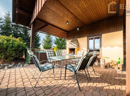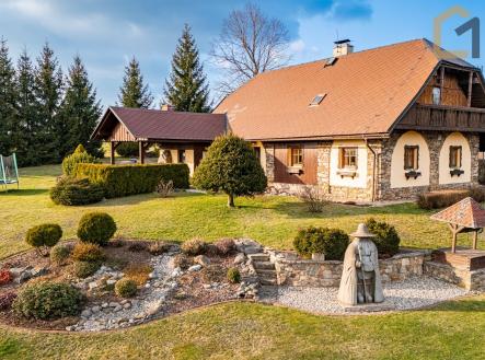 Nabízíme Vám za sníženou cenu krásnou a vyjímečnou chalupu s užitnou plochou 150 m² postavenou na pohodovém místě v klidné lokalitě Liberk - Rampuše. Chalupa nabízí téměř vše co si může moderní a náročný majitel přát. V přízemí si může nový majitel užívat slunečnou terasu před domem, prostornou kuchyň a obývací pokoj s krásnými kachlovými kamny . Dále dětskou hernu-pokoj, dospěláckou hernu s krbem , kulečníkem a pohodovým vnitřním posezením. Dalšími vychytávkami chalupy jsou celodřevěnná sauna a relaxační fit místnost s větší USSPA masážní vanou . Krb je oboustranný se společnou zadní stěnou, je tedy možno topit jak v herně, tak na venkovní sluneční terase. Komíny zděné, vyvložkované, střecha i stropy odizolované. První patro chalupy disponuje velkým balkonem a třemi ložnicemi vše provedeno ve dřevě. K relaxaci a odpočinku slouží i venkovní bazén , který je zasazen do kamemného lože. Nemovitost se nachází na pozemku o výměře cca 1.520 m² a je ve skvělém stavu. Jedná se o cihlovo-kamennou budovu s balkónem a terasou, které poskytují krásný výhled do okolí. Chalupa disponuje pěkným malým sklepem, kde je mimo jiné umístěna vodárna. Chalupa je kompletně zařízená. Tato nemovitost nabízí pohodlné bydlení a relax pro celou rodinu v klidném prostředí. Velkou výhodou je nejen bydlení v klidném místě, ale i malá vzdálenost větších lyžařských center Říčky v Orlických horách a Deštného v Orlických horách. Pro méně zkušené lyžaře a děti se nabízí ještě blíže položené sjezdovky ve Zdobnici. Nezmeškejte tuto skvělou nabídku! Jakékoli další informace a na případných prohlídkách se s Vámi velmi rád domluví náš realitní makléř Mgr. Radek Procházka