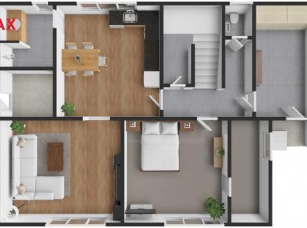 Toužíte po domově, kde se snoubí klid venkova, krása přírody a kde budete mít prostor pro vlastní sny? V malebné obci Kluček, obklopené zelení Džbánské pahorkatiny, na Vás čeká dům, který má duši, příběh a mnoho možností. Dům o dispozici 4+1 disponuje částečně rekonstruovaným přízemím, kde se z prostorné předsíně dostanete do ostatních částí domu: ložnice se šatnou, kuchyně s jídelním koutem, stylového obývacího pokoje. Součástí přízemí je i šikovná spíž, koupelna a oddělené wc. V prvním nadzemní podlaží se nachází další dva pokoje a prostor používaný jako sklad či dílna s možností výstupu na střechu předsíně. Dalším prostorem je rozlehlá půda, která umožňuje případně další růst. Dispozice je patrná z přiložných 2D/3D půdorysů. Vytápění je řešeno automatickým kotlem na tuhá paliva. Rozlehlý pozemek o velikosti 2 651 m² (včetně zastavěné) je skutečnou oázou klidu. Z větší části je rovinatý, v zadní části svažitý. Najdete zde další dvě samostatné budovy – stodolu s garáží a hospodářskou budovu. Ve stodole se nachází studna, kterou je možno použít jako zdroj užitkové vody pro splachování, sprchování, pračku. Hospodářská budova je nyní využívána jako letní kuchně a skladovací prostory. Kromě toho se na pozemku nachází kamenný sklep zasazený do svahu – ideální pro uskladnění úrody nebo vína. Zahrada má několik různých částí, kombinuje okrasnou i užitkovou část. Nechybí nově zbudovaná krytá pergola s posezením, bazén, rybníček, skleník, ani pečlivě udržované trávníky. V zadní části pozemku rostou vzrostlé ořešáky, které dotvářejí malebný obraz celého místa. Všechny pozemky jsou zařazeny dle územního plánu do ploch určených k bydlení. Přípustným využitím území jsou též plochy pro rekreaci. Objekty pro bydlení lze rozšířit o činnosti, spojené s vykonáváním živnosti. Více informací k územnímu plánu Vám poskytneme na vyžádání. Pozemky lze rozdělit se souhlasem stavebního úřadu. Obec Kluček leží v krásné Džbánské pahorkatině, oblasti oblíbené chataři, turisty, cyklisty i houbaři. Přímo v obci funguje prodejna COOP, v nedalekých Liběšicích (středisková obec) najdete další občanskou vybavenost: základní školu, mateřskou školu, praktického doktora. Do nejbližšího města (Žatec) je to pouhých 10minut jízdy autem. Okolí Klučku nabízí mnoho možností k odpočinku – lesy plné hub, rybníky, přírodní koupaliště, tajemné menhiry i turistické trasy. Je to místo, kde se dá žít pomalu, v klidu a v harmonii s přírodou. Můžete bydlet v klidu venkova a přitom díky dálnici D6 a D7 jste v Praze (Zličín, Letiště Václava Havla) za méně než 50minut. Pokud hledáte domov, který nabízí prostor, klid i možnost růstu, tento dům Vás okouzlí na první pohled. Zavolejte nebo napište – ráda vám tuto jedinečnou nemovitost osobně ukážu.