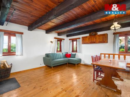 Hledáte historickou roubenku k okamžitému nastěhování, po rekonstrukci, sloužící jako rekreační objekt i k trvalému bydlení? Tento dvoupodlažní poloroubený, podstávkový, podsklepený dům se vstupní chodbou a centrálním schodištěm, o dispozici 4+1, s velkou dílnou a úložnými prostory, velkým pozemkem na mírném jižním svahu s krásným výhledem do polabské nížiny i kamennou terasou. V létě lze na zahradě sbírat třešně, višně, švestky a další ovoce, spát pod pergolou, na balkóně nebo stanovat. Ohniště na zahradě k posezení. K domu lze dokoupit vedlejší st. pozemek s domem s č.p. Dům je v krásné krajině starých sopek pod horou Sedlo u obce Liběšice (0,5 km) a Úštěk (4 km). Obec Liběšice má základní občanskou vybavenost, včetně MŠ a ZŠ, lékaře, obchodů, sportoviště, autobusového i vlakového spojení. V Litoměřicích je vše další potřebné ke kvalitnímu životu. Sjezd z D8 Litoměřice je vzdálen 20 minut, Praha 48 minut, Úštěk 5 minut, Česká Lípa 23 minut jízdy autem