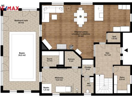 Exkluzivní rodinný dům 5+kk na prodej – oáza luxusu a klidu! Představujeme Vám jedinečnou nabídku exkluzivního rodinného domu, který zaujme nejen svým vysokým standardem, ale i promyšleným designem a neodolatelnými doplňky. Dům se nachází v tiché ulici na okraji obce Líbeznice, odkud se Vám naskytne dechberoucí výhled do širokého okolí. Hlavní přednosti nemovitosti: Dispozice 5+kk: Prostorný interiér o podlahové ploše 300 m² nabízí dostatek prostoru pro pohodlné bydlení. Luxusní vybavení: Dům disponuje dvěma šatnami, třemi samostatnými WC a dvěma koupelnami. Wellness zóna: Vyhřívaný vnitřní bazén o rozměrech 7 x 3,5 m s protiproudem, sauna o ploše 5 m² a ochlazovací bazének – ideální pro relaxaci a regeneraci. Moderní technologie: Podlahové vytápění, plynový kotel zajišťující topení i teplou vodu a kvalitní materiály – interiérové obklady z umělého kamene a klinkeru, vnitřní dveře z masivního dřeva...... Vícegenerační řešení: Možnost jednoduchého rozdělení domu umožňuje bydlení pro více generací pod jednou střechou. Kolaudováno v roce 2017: Moderní a kvalitní zpracování + vysoký standard použitých materiálů, který splňuje i ty nejnáročnější požadavky. Energetická náročnost: Dům je zařazen do PENB třídy B, což zaručuje efektivní využití energií a komfortní bydlení za nízké provozní náklady. Měsíční kompletní náklady: Přibližně 8.000 Kč zahrnuje všechny provozní poplatky. Nemovitost se nachází na pozemku o výměře 587 m², což poskytuje dostatek prostoru pro zahradu, venkovní aktivity či další individuální úpravy. Skvělá lokalita Líbeznic: Líbeznice jsou synonymem pro klidné a příjemné bydlení s vynikající občanskou vybaveností. V obci najdete vše, co potřebujete pro pohodlný každodenní život – od kvalitních škol a školek, přes supermarkety, lékárny, restaurace a kavárny, až po sportovní areály a volnočasová centra. Dále se připravuje výstavba obchodního centra na okraji obce směrem na Mělník, kde bude BILLA a dalších několik obchodů. Díky strategické poloze máte navíc zaručenou snadnou dostupnost do Prahy. Výborně dostupná dálnice D8 pak zajišťuje bezproblémové spojení nejen s Prahou, ale i s dalšími regiony. Nechte se okouzlit tímto exkluzivním rodinným domem, který kombinuje moderní technologie s luxusním životním stylem v klidném prostředí a zároveň nabízí výbornou dostupnost do centra Prahy a okolních regionů. Ideální volba pro ty, kteří hledají kombinaci jedinečného bydlení s prvotřídní občanskou vybaveností a klidnou lokalitou. Pro více informací nebo sjednání prohlídky mě neváhejte kontaktovat!