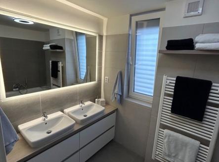 Pro Vaše rodinné bydlení u školy nabízíme dům 5+kk na dvou nadzemních podlažích. Novostavba z roku 2020 splňuje požadavky na moderní rodinné bydlení. V přízemí domu se nachází zádveří s vestavěnými skříněmi, pracovna, obývací pokoj s jídelnou, kuchyně, komora pro uložení potravin, sprchový kout s WC a plnohodnotným umyvadlem, uzavřená místnost pro technologie domu. Z obývacího pokoje i z kuchyně je přímý vstup na venkovní terasu. Ve druhém nadzemním podlaží jsou pak k dispozici čtyři neprůchozí pokoje, dva dětské, ložnice a čtvrtý samostatná šatna/2.pracovna s možností využití jako hostinského pokoje. Dále jsou v patře koupelna se dvěma umyvadly a vanou se sprchovou zástěnou, samostatné WC s umyvadlem a bidetovou sprškou, technická místnost vybavená pračkou a sušičkou s dodatečným úložným prostorem a prostorná předsíň využívaná jako herna. V domě jsou instalována trojskla, zateplená fasáda, automatické předokenní hliníkové žaluzie, jednotná vinilová podlaha bez prahů, podlahové vodní topení v obou podlažích včetně koupelen, změkčovač a centrální filtrace vody, zdrojem tepla jsou kondenzační kotel Junkers + tepelné čerpadlo Toshiba, fotovoltaika včetně bateriového úložiště (11kWh) a akumulace do TUV (120l Bosch + 200l Dražice) s automatickým řízením přetoků a flexibility, s tarifem D57d, v zahradě je rozvod závlahy a elektřiny po celém pozemku. Celkové náklady na elektřinu a plyn se pohybují kolem 3000Kč měsíčně! Pohodlí zvyšuje automatizované řízení domácnosti zahrnující osvětlení, vstupu, zabezpečení, zastínění, ohřev TUV, vytápění, klimatizaci (ve všech místnostech), fotovoltaické elektrárnu (ročně vyrobí 5MW), dobíjecí stanici EV (22kW), vjezdové brány. Připojení na internet optickým kabelem až 200Mb + terestriální / IPTV. Pozemek přímo sousedí s pozemkem fakultní ZŠ UK. Cesta dětí do školy tak začíná zahradní brankou. Doslova za humny se nachází sportovní a dopravní hřiště, 5 minut chůze potom velmi navštěvovaný volnočasový areál s restaurací, poliklinika, veterinární ordinace, fotbalové hřiště, sportovní hala, pošta, bankomat, steakhouse, restaurace, bistro, kavárna, 2 prodejny potravin, vyhlášené řeznictví a zahradnictví. Líbeznice jsou dostupné autobusem navazujícím na PID, autem 15 min do centra Prahy! SHRNUTÍ NADSTANDARDU: 3x komora + automatizace žaluzií a osvětlení + klimatizace ve všech místnostech + topení podlahové vodní + elektrická posuvná brána + FVE + ohřev TUV z FVE/plyn + bioklimatická pergola + zařízené dětské hřiště + wallbox + parkování až 3 vozidel na pozemku + malá pracovna (4,6 m2 také s klimatizací) možno zvětšit na samostatný 9m2 pokoj + zvětšená terasa pro umístění výřivky + kuchyňská linka s výsuvy a dojezdy vybavena chytrými spotřebiči AEG, BOSCH a WHIRPOOL tj. 2x lednice, 2x mrazák, horkovzdušná trouba, mikrovlnka, šuplík na temperování talířů, myčka ve výši pasu, indukce, tichá digestoř. Tato nemovitost je určena výhradně přímým zájemcům o koupi. Na inzerát můžete také reagovat přímo na webu Bezrealitky: https://www.bezrealitky.cz/nemovitosti-byty-domy/862950-nabidka-prodej-domu-trebizskeho-libeznice