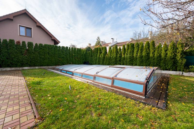 Představujeme Vám jedinečnou příležitost k pronájmu vily 5+kk s užitnou plochou 170 m², která kombinuje maximální soukromí s prestižní adresou př ímo v centru obce Líbeznice. V každém patře se nachází koupelna s WC, a co je obzvláště lákavé, u každé hlavní ložnice najdete samostatnou šatnu. Pozemek je obklopen vzrostlými stromy a okrasnými dřevinami, které vytvářejí pocit naprosté izolace a klidu. Dům má vše co potřebujete: bazén s tepelným čerpadlem, udírnu, sklad zahadního nábytku, pergolu, terasu a v patře balkón. Parkování pro 8 aut, 3 kryté stání, soukromá příjezdovka jako k americkému ranči! Tenhle dům bude sloužit Vaší rodině a nic Vás nebude rušit. Až pojedete na prohlídku, dům nenajdete, a to je jeden z důvodů proč ho chtít pronajmout.