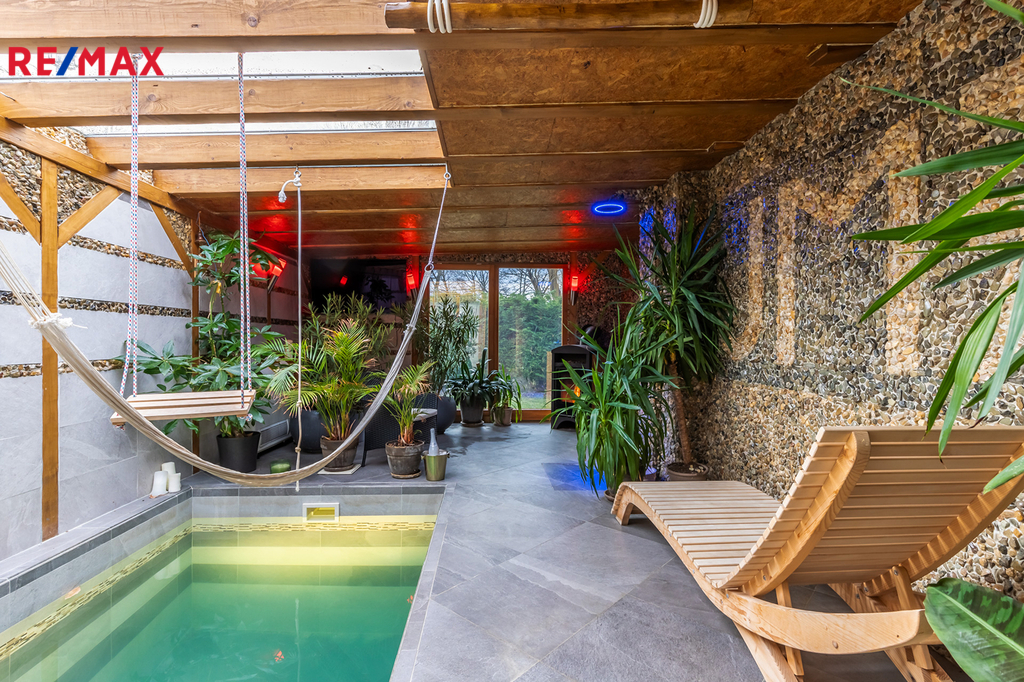 Součástí je i prodej domu pro hosty o dispozici 2+KK s výměrou 65 m². Ve výhradním zastoupení majitele si vám dovolujeme nabídnout exkluzivní nízkoenergetický náročný zateplený cihlový patrový rodinný dům kolaudovaný v roce 2018 o dispozici 6+KK vč. 21 solárních panelů, vlastní wellness částí, vyhřívanou garáží a domem pro hosty o dispozici 2+kk o celkové výměře 243 m² a zahradou o výměře 799 m² v obci Libiš, která je vzdálená 15 minut jízdy autem od hranice hlavního města Prahy. Díky energetické náročnosti A a 21 solárními panely, jsou poplatky za režii celého objektu mezi 5.000,-Kč!!!! kapacita baterií činí 21 kWh. Objekt je napojen na všechny inženýrské sítě vyjma plynu. Nechybí ani vlastní vrtaná studna, která je přivedena do domu. Ohřev vody zajišťuje 3x e. boiler, který je umístěný v každé budově. Vytápění v hlavní budově je řešeno podlahovým vytápěním v každém patře vč. garáže. Vše je pohaněno tepelným čerpadlem voda-vzduch. Další možností je využití krbových kamen na tuhá paliva. V domě pro hosty je vytápění řešeno primárně krbem. Další možností jsou případně elektrické přímotopy. Ve wellness části je vytápění řešeno krbem a podlahovým topením. Hlavní budova vám nabídne dvě patra o celkové ploše 140 m². 1. patro čítá plochu 113,6 m² kde vás uvítá reprezentativní vstupní hala. Po celé ploše spodního patra je položena italská dlažba 60x60 ve které je aplikováno podlahové topení. Z hlavního vstupu či vstupu z obývací prostoru vás uvítá rozlehlá terasa o výměře 42 m². V daném patře se nachází koupelna s rohovou vanou vč. toalety a toaletou pro hosty. 2. patro čítá plochu 72,78 m² nachází se zde 3 obývací místnosti + koupelna se sprchovým koutem a vanou. Po celé ploše horního patra je položena dřevěná laminátová podlaha. V případě zájmu máme vydané i stavební povolení v rámci nástavby/přístavby, kde v projektu byl zakomponován i výtah. Vytvořila by se prostorná obývací místnost o výměře 38,88 m² + velkorysá terasa s výměrou 51,51 m². Wellness část nabízí krásných 45 m². Nachází se zde bazén se slanou vodou (vyhřívaný) a na míru dělaná sauna. Nechybí ani otevřená sprcha a krbová kamna. Dům pro hosty o dispozici 2+KK s výměrou 65 m². V těsné blízkosti se nachází škola a školka. Hned za domem se nachází Špičáková zahrada. V obci se dále nachází pošta a obecní úřad. Kompletní občanská vybavenost je v obci Neratovice, která je vzdálená pouhých 5 minut autem. Velkou výhodou je perfektní autobusové spojení, díky kterému se dostanete do 25 min na metro Ládví. S financováním vám moc rádi pomůžeme. Pro více informací neváhejte kontaktovat makléře nabídky.