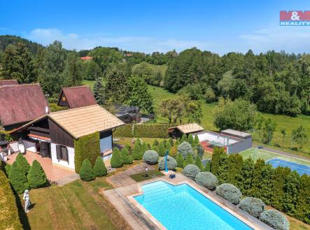 Nabízíme k prodeji rekreační chatu o užitné ploše 45 m², situovanou v malebné části obce Libuň – Březka. Chata leží na prostorném, udržovaném pozemku o velikosti 811 m² v srdci Českého ráje. Dispozice chaty nabízí v přízemí kuchyň s jídelním koutem, koupelnu s toaletou a obývací pokoj. V podkroví se nachází dvě ložnice s balkonem, který poskytuje příjemný výhled do okolní přírody. Venkovní prostor doplňuje zastřešená terasa s posezením a grilem – ideální pro letní relaxaci. Dominantou zahrady je krytý bazén o rozměrech 5 × 9 metrů, který přináší komfortní koupání i v chladnějším počasí. Součástí pozemku je také zahradní domek vhodný k uskladnění zahradního náčiní a techniky. Chata se nachází 2 km od Prachovských skal, 10 km od zříceniny hradu Trosky, 6 km od Jičína a 16 km od Turnova s nájezdem na dálnici D10. Nemovitost je skvělou volbou jak pro vlastní rekreaci, tak jako investice k pronájmu v jedné z nejatraktivnějších lokalit u nás.
