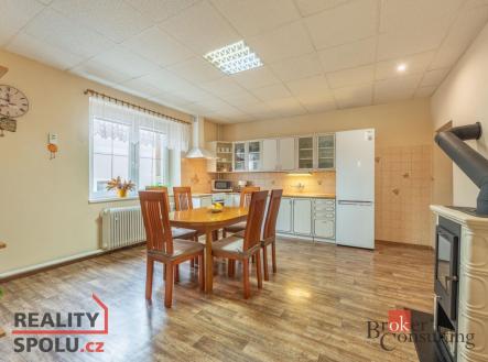 Nabízíme k prodeji rodinný dům o užitné ploše 161 m², který se nachází v klidné části města Libušín. Nemovitost nabízí dvě samostatné bytové jednotky, dvě garáže, dílnu a menší zahradu. Díky své dispozici a dostatku prostoru je ideální pro vícegenerační bydlení. Po vstupu do domu se ocitnete ve vstupní hale, ze které po levé straně vedou dveře do chodby. Z chodby je vstup do první bytové jednotky, která se skládá z kuchyně s jídelnou, samostatným obývacím pokojem a ložnicí. Další dveře v chodbě vedou do druhé bytové jednotky, kde se nachází kuchyně propojená s obývacím pokojem a jídelnou a dále samostatná ložnice. V patře je také další samostatný pokoj, který je momentálně využívaný jako společenská místnost. Z chodby vede dřevěné točité schodiště do druhého podlaží, kde se nachází další ložnice a rozsáhlá půda vhodná k vestavbě a rozšíření obytné části. Libušín leží pouhé 4 km od Kladna a nabízí veškerou občanskou vybavenost – školu, školku, obchody i poštu. Město má výborné autobusové spojení do Kladna i Prahy. Okolí tvoří klidná příroda a lesy, ideální pro procházky, cyklistiku a rodinné výlety. Skvělé místo pro ty, kteří hledají klidné bydlení s výbornou dostupností města. Neváhejte nás kontaktovat, rádi vám nemovitost představíme osobně.