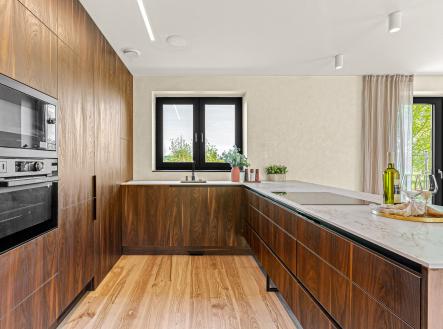 Hledáte klidné místo pro rodinný život? Chcete bydlet na dosah přírodě i Praze? Zveme vás na prohlídku novostavby v Libušíně u Kladna. Dům stojí v těsné blízkosti lesoparku a přitom jen kilometr od centra města, kde najdete potřebné zázemí - školku, školu, potraviny, poštu i dětské hřiště. Zděný patrový dům s dispozicí 4+kk velmi nadstandardně vybavený a to jak technologicky tak designově. Přejete si dominantní sedačku v obývacím pokoji, kuchyňskou linku s ostrůvkem nebo dřevěné podlahy v celém domě, to vše již v domě najdete. Domácnost dostanete už vybavenou inteligentní technologií Loxone s kompletním osvětlením a audiosystémem. Podlahové topení, krb s řízeným odvětráváním, rekuperace s výměníkem, tepelné čerpadlo Mitsubishi Power Inverter, centrální vysavač Husky Cyklon, desetikubíková retenční nádrž nebo příprava na fotovoltaiku. To vše je součástí kupní ceny. Dům díky rekuperaci a po osazení fotovoltaiky dosáhne na energetickou třídu A, takže výdaje za energie váš rozpočet nezatíží potěší. Tento rodinný dům s podlahovou plochou komfortních 151 metrů čtverečních leží na pozemku se zahradou o 521 metrech. V přízemí najdete hlavní obytný prostor s kuchyní a vstupem na terasu, technickou místnost a wc. V patře na vás pak čekají 3 ložnice, 2 koupelny a praktická šatna do které se dostanete přímo z ložnice. Sníte o terase, bazénu a dětském hřišti se skluzavkou nebo se těšíte na okrasné záhony? Místo tady najdete pro všechny své sny. Nenechte si ujít luxusní bydlení na romantické adrese v Libušíně. Pohodlí této novostavby a krásné okolí stvořené pro rodinný život čeká možná právě na vás! Pokud si budete přát, je možné nechat dokončení celého domu na nás, stejně tak jako pomoc při převzetí hypotéky nebo vyřízení jiné formy financování. Těšíme se na osobní setkání s vámi.