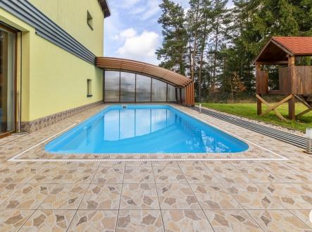 Prodej luxusního domu 4kk s bazénem a wellnes, zahrada 1310m2