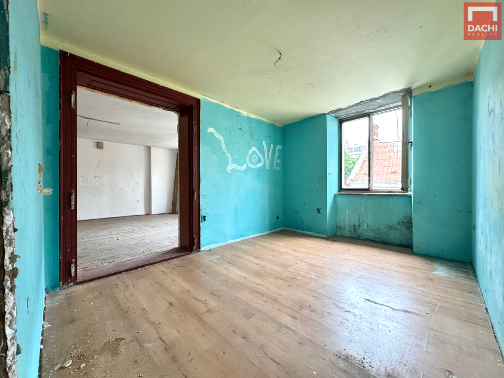 K prodeji Vám nabízíme byt 3+1, 75 m2 + půda cca 150 m2 - 1/2 cihlového rodinného domu v Lipníku nad Bečvou, v historické části ( 50 m od hlavního náměstí ) na ulici Hvězdní. Byt je polovinou 2. NP. Je možnost od druhého majitele dokoupit 2. část podílu a tím pádem sjednotit celé patro do bytu 6+1 - 154m2. Díky dispozici je možné celé patro rozdělit na 2-3 jednotky, které se dají pronajímat / prodat samostatně. Prostorná půda, která kopíruje půdorys bytu, se dá využít k mezonetové vestavbě. Jednotka je vhodná k pronájmu jako celku například jako ubytovna, či rozdělení a následný prodej. Na rekonstrukci fasády, střechy a oken je možno čerpat dotace. Jedná se o 2. nadzemní podlaží s přístupem na balkón, který směřuje do dvorku. Byt je určen ke kompletní rekonstrukci, aktuálně se nachazí ve špatném technickém stavu.