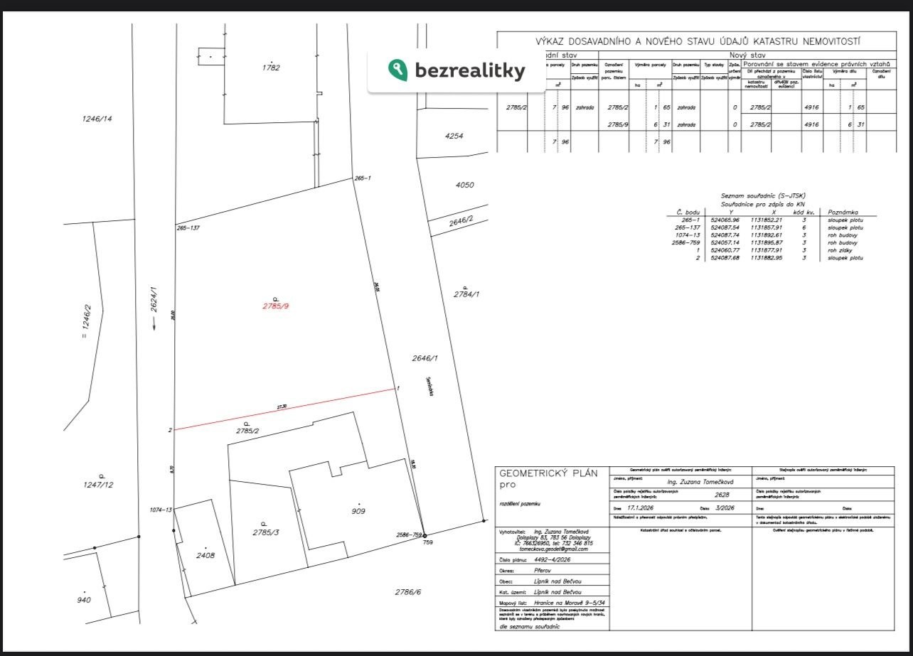 Prodej oploceného pozemku – Lipník nad Bečvou (bez provize) Jako výhradní majitel nabízím k prodeji oplocený pozemek parc. č. 2785/2 v Lipníku nad Bečvou. Pozemek je kompletně oplocený, má uzamykatelnou vjezdovou bránu, na pozemku se nachází studna a je zde vyveden přívod vody. Přístup je z veřejné komunikace, lokalita je klidná a v blízkosti rodinných domů. Prodej probíhá bez realitní kanceláře a bez provize. Kupní smlouva i úschova kupní ceny budou zajištěny u notáře – peníze v bezpečné notářské úschově. Cena: 1 550 000 Kč Přepis vlastnického práva a právní služby hradí kupující. Geometrický plán k dispozici. Realitní kanceláře prosím nekontaktovat. Tato nemovitost je určena výhradně přímým zájemcům o koupi. Na inzerát můžete také reagovat přímo na webu Bezrealitky: https://www.bezrealitky.cz/nemovitosti-byty-domy/977137-nabidka-prodej-pozemku-na-becve-lipnik-nad-becvou