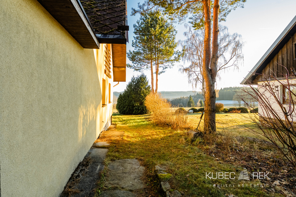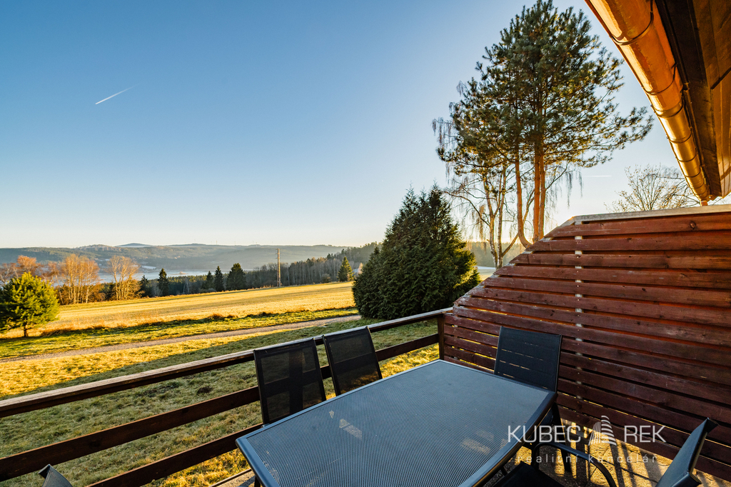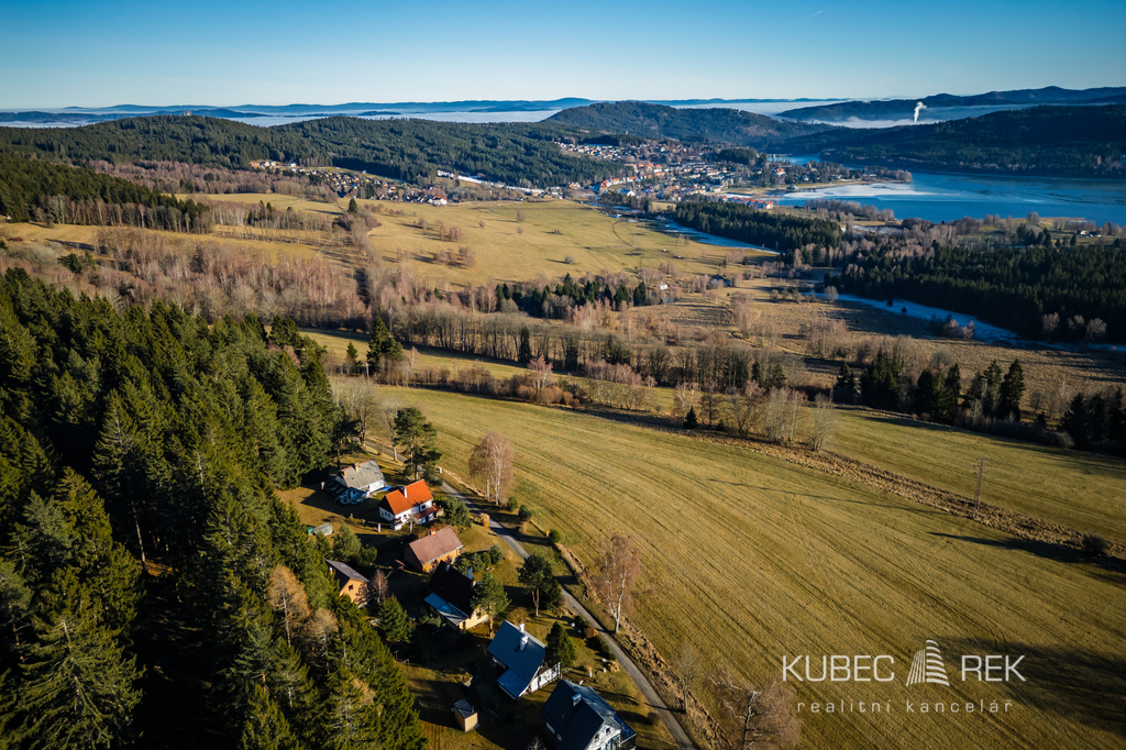 Hledáte místo, kde se propojuje klid šumavské přírody, dechberoucí výhledy na Lipenskou přehradu a celoroční možnosti sportu i odpočinku? Právě zde nabízíme prodej dvojchaty, která zahrnuje dva samostatné rekreační objekty, každý se svým vlastním číslem evidenčním. Je možné zakoupit jednu chatu samostatně, nebo získat oba objekty najednou a využít tak plný potenciál tohoto výjimečného místa. Nemovitost je ideální pro rodinnou rekreaci, bydlení nebo jako investice s možností stabilních výnosů z krátkodobého pronájmu. Chaty stojí na kouzelném místě obklopeném pouze několika dalšími objekty, kde se vám otevře široká louka a přímý výhled na Lipno, jenž se mění s každým ročním obdobím. Za stavbou se rozprostírá travnatá plocha s velkým ohništěm, které je jako stvořené pro večery s rodinou či přáteli, a jen pár kroků dál začíná les plný hub. Před chatami se nachází prostorná terasa, oddělená pro soukromí obou částí. Samozřejmostí je i praktický uzamykatelný sklep pod terasou, ideální pro uložení kol či lyží. Interiér jedné z chat nabízí dispozici 3+1 o užitné ploše 76 m2 je rozložen ve dvou podlažích. V přízemí se nachází předsíň a chodba s úložnými prostory, koupelna a útulná společenská místnost s krbem, která je propojená s kuchyní. Velké prosklené dveře propojují obývací část s terasou a nechají do prostoru pronikat dostatek světla i atmosféru lipenské krajiny. V prvním patře pak najdete dvě ložnice. Rekonstrukce z roku 2013 zahrnovala mimo jiné novou kuchyň, koupelnu, plovoucí podlahy, dřevěné obklady i nová střešní okna, takže chata působí velmi udržovaně a připraveně k okamžitému využití. Chata je zateplena a vytápění je řešeno elektrickými přímotopy a kamny na dřevo. Otevřený krb dodává atmosféru i teplo. Teplá voda je ohřívána bojlerem a v koupelně potěší podlahové vytápění i sušák na ručníky. Velkou předností je také lokalita. Lyžařský areál Lipno je vzdálen pouhé 2 kilometry, stejně jako nástup na bruslařskou a běžkařskou magistrálu. Milovníci zimního koupání, rodiny s dětmi i sportovní nadšenci ocení blízkost aquaparku, Stezky korunami stromů, bobové dráhy či nepřeberného množství cyklotras. V létě je Lipno rájem pro koupání, paddleboarding, rybaření nebo výlety lodí. Český Krumlov, jedno z nejkrásnějších měst Evropy, je vzdálen pouhých 20 kilometrů. Tato nemovitost nabízí jedinečnou kombinaci klidného místa v přírodě a zároveň možností celoročního vyžití. Díky dvěma samostatným chatám je ideální jak pro vlastní rekreaci, tak pro krátkodobé pronajímání, které je v této lokalitě dlouhodobě velmi žádané. Pokud hledáte místo, které vám bude přinášet radost i stabilní hodnotu do budoucna, pak věřím, že právě tato dvojchata je výjimečnou příležitostí. Rád vás provedu osobní prohlídkou – atmosféra tohoto místa vás uchvátí už při prvním kroku z auta.