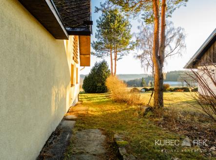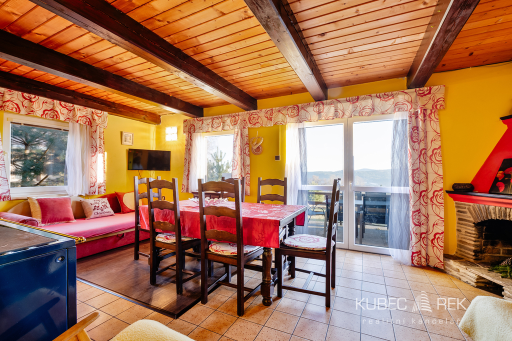 Hledáte místo, kde se propojuje klid šumavské přírody, dechberoucí výhledy na Lipenskou přehradu a celoroční možnosti sportu i odpočinku? Právě zde nabízíme prodej dvoj chaty, která zahrnuje dva samostatné rekreační objekty, každý se svým vlastním číslem evidenčním. Je možné zakoupit jednu chatu samostatně, nebo získat oba objekty najednou a využít tak plný potenciál tohoto výjimečného místa. Nemovitost je ideální pro rodinnou rekreaci, bydlení nebo jako investice s možností stabilních výnosů z krátkodobého pronájmu. Chaty stojí na kouzelném místě obklopeném pouze několika dalšími objekty, kde se vám otevře široká louka a přímý výhled na Lipno, jenž se mění s každým ročním obdobím. Za stavbou se rozprostírá travnatá plocha s velkým ohništěm, které je jako stvořené pro večery s rodinou či přáteli, a jen pár kroků dál začíná les plný hub. Před chatami se nachází prostorná terasa, oddělená pro soukromí obou částí. Samozřejmostí je i praktický uzamykatelný sklep pod terasou, ideální pro uložení kol či lyží. Interiér jedné z chat nabízí dispozici 4+1 o užitné ploše 89 m2 je rozložen ve třech podlažích. V přízemí se nachází předsíň a chodba s úložnými prostory, koupelna a útulná společenská místnost s krbem, která je propojená s kuchyní. Velké prosklené dveře propojují obývací část s terasou a nechají do prostoru pronikat dostatek světla i atmosféru lipenské krajiny. V prvním patře najdete dvě ložnice, zatímco celé podkroví tvoří další samostatný pokoj se střešními okny s výhledem na přehradu. Rekonstrukce z roku 2013 zahrnovala mimo jiné novou kuchyň, koupelnu, plovoucí podlahy, dřevěné obklady i nová střešní okna, takže chata působí velmi udržovaně a připraveně k okamžitému využití. Chata je zateplena a vytápění je řešeno elektrickými přímotopy a kamny na dřevo. Otevřený krb dodává atmosféru i teplo. Teplá voda je ohřívána bojlerem a v koupelně potěší podlahové vytápění i sušák na ručníky. Velkou předností je také lokalita. Lyžařský areál Lipno je vzdálen pouhé 2 kilometry, stejně jako nástup na bruslařskou a běžkařskou magistrálu. Milovníci zimního koupání, rodiny s dětmi i sportovní nadšenci ocení blízkost aquaparku, Stezky korunami stromů, bobové dráhy či nepřeberného množství cyklotras. V létě je Lipno rájem pro koupání, paddleboarding, rybaření nebo výlety lodí. Český Krumlov, jedno z nejkrásnějších měst Evropy, je vzdálen pouhých 20 kilometrů. Tato nemovitost nabízí jedinečnou kombinaci klidného místa v přírodě a zároveň možností celoročního vyžití. Díky dvěma samostatným chatám je ideální jak pro vlastní rekreaci, tak pro krátkodobé pronajímání, které je v této lokalitě dlouhodobě velmi žádané. Pokud hledáte místo, které vám bude přinášet radost i stabilní hodnotu do budoucna, pak věřím, že právě tato dvojchata je výjimečnou příležitostí. Rád vás provedu osobní prohlídkou – atmosféra tohoto místa vás uchvátí už při prvním kroku z auta.