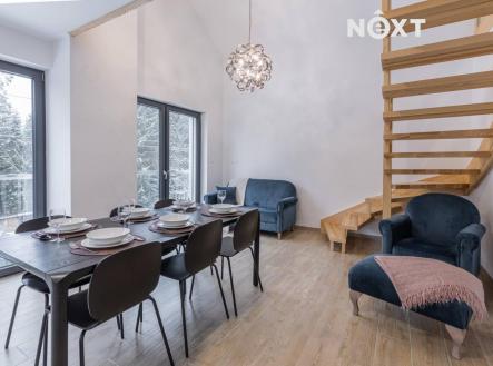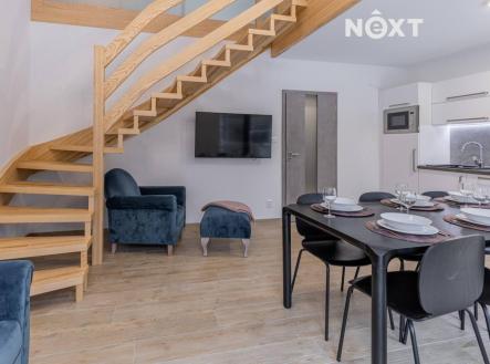 Nadstandardní novostavba o 2 bytových jednotkách v klidné části obce Lipno nad Vltavou. Tento zděný, kvalitně zateplený a tepelným čerpadlem vytápěný dům byl dokončen v roce 2022 a je umístěn v perspektivní, přitom klidné lokalitě obce. Nemovitost se skládá ze 2 bytových jednotek, z nichž každá má svůj vlastní vchod: Přízemní BJ 2kk o výměře 46,3m2 se skládá ze zádveří, obývacího pokoje s kuchyňským koutem, ložnice, koupelny s wc, technické místnosti a venkovní terasy. V patře je BJ 2kk s podkrovní galerií o celkové výměře 82,15m2 a skládá se ze zádvěří, obývacího pokoje s kuchyňským koutem, ložnice, koupelny s wc, galerie a technické místnosti. K domu náleží zahrada o výměře 439m2 v níž je umístěna plechová zahradní garáž. Svojí polohou u lesa nabízí dům nejen harmonický výhled z obou bytů, ale především dokonalé soukromí, které je v této turisticky atraktivní destinaci spíše výjimkou. Nemovitost byla postavena s důrazem na kvalitní materiály a provedení. Celá plocha je vytápěna podlahovým topením s využitím tepelného čerpadla a s velmi nízkými náklady na provoz. Je prodávána kompletně vybavená a je tak možné případně plynule navázat na provoz ubytovacích služeb. Zajímavou výhodou může být možnost majetkového rozdělení na 2 samostatné bytové jednotky. Rádi Vás osobně přesvědčíme o výjimečnosti a potenciálu této nemovitosti. V případě zájmu lze nemovitost financovat hypotéčním úvěrem. Nezávazně Vám připravíme nabídku možného financování přes naše hypoteční centrum. Pouze u nás vám zajistíme moderní financování až na 35 let, bez ohledu na věk a prokazování příjmů, či nutnosti předkládat daňové přiznání (u podnikatelů). Zeptejte se nás a bydlete chytře! Pro komunikaci uvádějte evidenční číslo zakázky N111282.