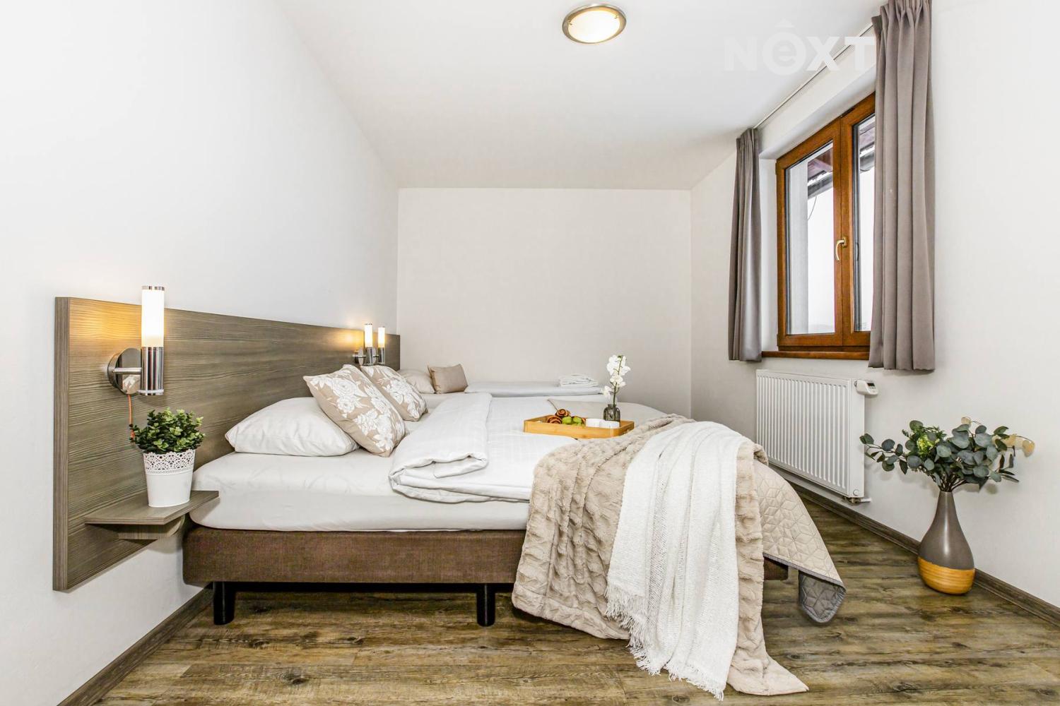Nabízíme k prodeji plně vybavený rodinný dům o dispozici 3+kk s vlastním pozemkem a parkovacím stáním v Lipně nad Vltavou, v části Kobylnice, v moderní a klidné zástavbě rodinných domů, pouhých 450 metrů od vodní hladiny lipenské přehrady. Místo, kde se potkává šumavský klid, čistá příroda a dlouhodobě stabilní hodnota nemovitostí. Dům je vhodný jak pro vlastní rekreaci či trvalé bydlení, tak jako prověřená investiční nemovitost s okamžitým výnosem. Jedná se o zděnou novostavbu kolaudovanou v roce 2016, ve velmi dobrém technickém stavu. Užitná plocha domu činí 74 m² a je zasazena do pozemku o celkové výměře 309 m², z čehož 98 m² tvoří zastavěná plocha a nádvoří a 211 m² udržovaná zahrada poskytující dostatek soukromí i prostoru k odpočinku. Nemovitost je k nastěhování ihned a prodává se včetně kompletního nábytku a vybavení, což umožňuje okamžité užívání nebo plynulé pokračování v pronájmu bez nutnosti dalších investic. Dispozice domu je řešena prakticky a účelně. Interiér tvoří dva samostatné pokoje, ložnice a další pokoj, dále prostorný obývací pokoj s kuchyňským koutem a přímým vstupem na slunnou terasu a zahradu. Součástí domu je koupelna, samostatná toaleta, zádveří a technická místnost. Obytný prostor je světlý, vzdušný a přirozeně propojený s venkovní částí pozemku. Dům je napojen na obecní vodovod a kanalizaci. Vytápění je řešeno elektrickým kotlem v kombinaci s krbovými kamny, která dodávají interiéru příjemnou atmosféru zejména v zimních měsících. Ohřev vody zajišťuje elektrický bojler. Součástí vybavení je internetové připojení a inteligentní systém HOMEMATIC umožňující efektivní řízení spotřeby energií, což je významnou výhodou při komerčním využití. K domu náleží vlastní parkovací stání. Lipno nad Vltavou patří mezi nejvyhledávanější rekreační lokality České republiky s celoročním využitím. V létě nabízí koupání, vodní sporty, turistiku a cyklostezky, v zimě lyžování v areálu Kramolín, běžkování i bruslení. Lokalita je dobře dostupná, Český Krumlov je vzdálený přibližně 32 kilometrů, České Budějovice 58 kilometrů a rakouský Linec s mezinárodním letištěm zhruba 54 kilometrů. Nemovitost je dlouhodobě a úspěšně využívána ke krátkodobému pronájmu české i zahraniční klientele. Správu zajišťuje zavedená profesionální společnost Residence Lipno Management s.r.o. se zázemím přímo v místě. Součástí koupě je rovněž podíl ve společnosti, která vlastní recepci a další pozemky v rámci areálu, což posiluje dlouhodobou hodnotu celé investice. Pro komunikaci uvádějte evidenční číslo zakázky N115968.