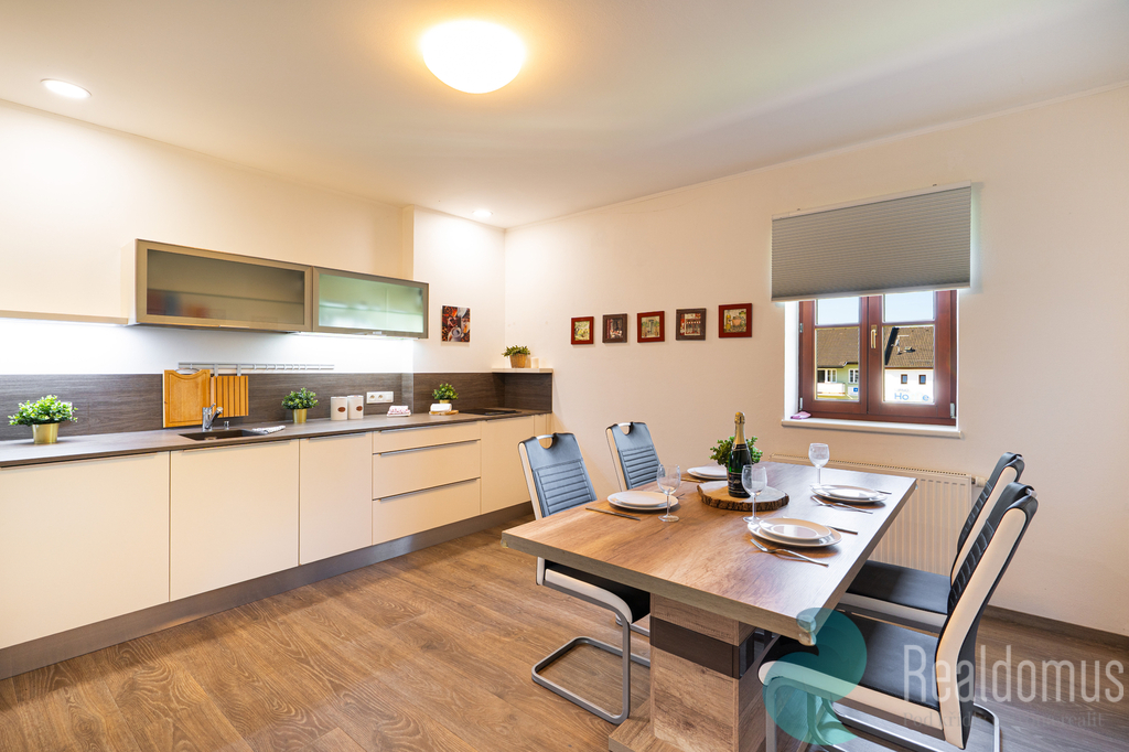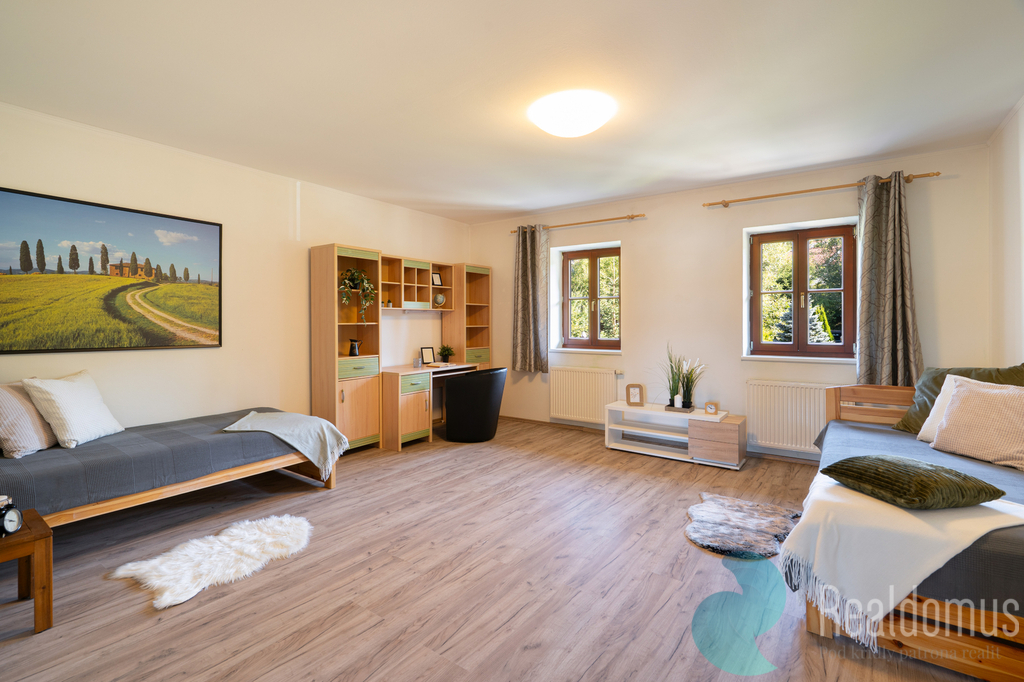REALDOMUS nabízí ve výhradním zastoupení majitele k prodeji nemovitost, která se nachází na výjimečném místě v Lipně nad Vltavou. Tato nemovitost představuje ideální spojení podnikání, komfortního rodinného bydlení či rekreačního zázemí. Díky své poloze a dispozici se jedná o atraktivní nabídku s širokým potenciálem využití. Prostorný byt nabízí výhled směrem k Lipenskému jezeru a současně poskytuje klidné zázemí díky ložnicím směřujícím do tiché, pečlivě udržované zahrady. Naopak přední část nemovitosti orientovaná směrem k promenádě je ideální pro provozování obchodu či služeb. Spojení bydlení a podnikání tak nikdy nebylo jednodušší. KOMERČNÍ PROSTORY: • Prodejní prostor s výlohou a vstupem z promenády – aktuálně vybaven regály • Kancelář - vybavena nábytkem • Sociální zázemí Tyto prostory byly využívány pro provoz lékárny, ale lze je upravit dle vlastního podnikatelského záměru. PROSTORNÝ BYT 3+1: • Vstup možný přes zahradu nebo přes komerční část • Hala s úložnými skříněmi • Kuchyň s jídelním koutem – vybavena linkou a moderními spotřebiči • Obývací pokoj s krbovými kamny – pohodlná sedačka, komoda, konferenční stolek • Pokoj – dvě postele, psací stůl, úložné prostory • Ložnice Další benefity: • Udržovaná zahrada s možností napojení na vířivku • Dřevěný sklad s praktickým zastřešením • Výjimečná poloha – ideální pro relaxaci i podnikání Oblast kolem Lipenského jezera je oblíbenou celoroční destinací. V létě láká na vodní sporty, cyklistiku, pěší túry i projížďky lodí po jezeře. Místní skiareál nabízí v zimě komfortní lyžování pro celou rodinu, a pokud zatoužíte po větším lyžařském areálu, rakouský Hochficht je vzdálený pouhých 40 minut jízdy. Tato lokalita spojuje široké možnosti aktivního vyžití s příjemným a klidným prostředím vhodným jak pro každodenní bydlení, tak rekreaci. Samotné centrum Lipna poskytuje veškerou občanskou vybavenost a zároveň neztrácí kouzlo přírody a čistého prostředí Šumavy. Uvedené výměry jsou orientační. V případě více zájemců bude nemovitost prodána nejlepší nabídce a majitel si vyhrazuje právo vybrat kupujícího na základě jim zvolených kritérií. Veškeré zveřejněné údaje v tomto inzerátu mají pouze informativní charakter.