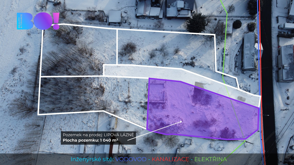Nabízím k prodeji atraktivní stavební pozemek o velikosti cca 1 040 m²v mimořádně žádané lokalitě Lipová Lázně, která patří mezi nejvyhledávanější obce v Jeseníkách. Lokalita je ideální pro klidné rodinné bydlení, rekreaci i investici s celoročním využitím. Parcela na které samostatné pozemky nacházejí, je aktuálně před rozdělením, přičemž ideální návrh parcelace je znázorněn na přiloženém obrázku. Každý z pozemků bude mít podíl na příjezdové komunikaci v poměru 1/4. Před samotným prodejem budou parcely upraveny a výškově vyrovnány, aby byly připraveny pro bezproblémovou realizaci budoucí stavby. Kompletní inženýrské sítě (elektřina, voda, kanalizace, plyn) se nachází na hranici pozemku. Dle územního plánu je zde možné postavit rodinný dům se dvěma nadzemními podlažími a podkrovím. Lipová-lázně je atraktivní lokalita v lázeňském a horském prostředí s dostupností lyžařských areálů, turistických a cyklistických tras jako jsou například: - Lázně Lipová - Priessnitzovy léčebné lázně Jeseník - Schrothovy léčebné lázně Dolní Lipová - Ski areál Lázeňský vrch – Lipová Lázně - Ski centrum Miroslav – Lipová Lázně - Ski areál Ramzová - Červenohorské sedlo - Kouty nad Desnou - Paprsek - Filipovice - Rychlebské stezky – vyhlášené cyklotraily - Jeskyně Na Pomezí - Jeskyně Na Špičáku - Faunapark Lipová Lázně - Hřebenové trasy Jeseníků – Šerák, Keprník - Balneopark a promenády Priessnitzových lázní V obci se nachází, mateřská a základní škola, obchody, restaurace, kavárny, vlakové i autobusové spojení, zdravotní péče a sportovní zázemí. Tato nabídka představuje výjimečnou příležitost ke stavbě domu v jedné z nejatraktivnějších lokalit Jeseníků s kompletní občanskou vybaveností a širokými možnostmi sportovního i relaxačního vyžití. V případě zájmu mě neváhejte kontaktovat, rád vám poskytnu více informací a domluvím osobní prohlídku. S případným vyřízením financování také rád pomůžu.