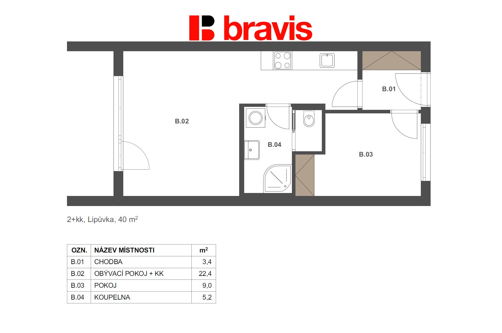 Moderní, praktické a přitom klidné bydlení v blízkosti Brna? Přesně takové možnosti nabízí bydlení či podnikání v právě dokončovaném polyfunkčním komplexu Lipůvka! Ve výhradním zastoupení developera nabízíme k prodeji novostavbu ateliéru o dispozici 2+kk (1B) a užitné ploše 40,8 m² v obci Lipůvka u Brna. Ateliér nabízí prostornou obytnou část s kuchyňským koutem o vel. 22,4m2, ložnici ( 9m) chodbu, která nabízí dostatek prostoru pro vestavěný nábytek (3,4m2) a koupelnu (5,2 m2). Najdete zde vše, co si moderní bydlení žádá: • Koupelny ve vysokém standardu od renomovaného studia Ptáček - koupelna se sprchovým koutem a otopným žebříkem • Vinylové podlahy a okna s trojskly, které zajišťují maximální odhlučnění a tepelnou izolaci. • Energetická třída B, která Vám ušetří náklady na energie. • Podlahové vytápění - vlastní plynová kotelna v budově pro efektivní vytápění. • Venkovní elektrické žaluzie na oknech obytných místností (příprava). V ceně ateliéru je zahrnuto také venkovní parkovací stání. Lokalita, která má vše, co potřebujete Lipůvka je malebná obec v okrese Blansko, pouhých 15 minut od Brna, což z ní dělá ideální místo pro ty, kteří chtějí bydlet v klidném prostředí, ale zároveň mít snadnou dostupnost do města. Proč si vybrat právě tento ateliér? • Moderní a praktické bydlení či podnikání v novostavbě s nízkými náklady. • Skvělá lokalita s výbornou dostupností do Brna. • Kompletní občanská vybavenost v obci. • Ideální pro jednotlivce, páry nebo jako investice. Pokud Vás tato nabídka zaujala, kontaktujte uvedeného makléře.