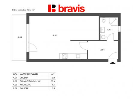 Prodej moderní novostavby bytu 1+kk, Lipůvka u Brna, balkon, parkovací stání a sklep v ceně
