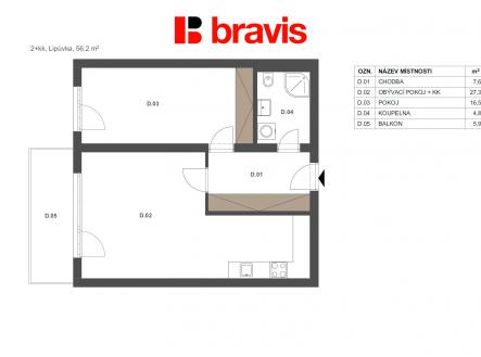 Moderní, praktické a přitom klidné bydlení v blízkosti Brna? Přesně takové možnosti nabízí bydlení v právě dokončovaném polyfunkčním kompexu Lipůvka! Ve výhradním zastoupení developera nabízíme k prodeji novostavbu bytu o dispozici 2+kk (2D) a užitné ploše 56,2 m² v obci Lipůvka u Brna. Tento byt je ideální volbou pro jednotlivce, mladé páry nebo jako investice do budoucna. Byt nabízí velkorysý obývací pokoj s kuchyňským koutem o velikosti 27,3 m2 a pokoj o vel. 16,5 m2. Součástí je také prostorná chodba (7,6m2), kde je dostatek místa pro vestavěný nábytek. Najdete zde vše, co si moderní bydlení žádá: • Koupelny ve vysokém standardu od renomovaného studia Ptáček - koupelna se sprchovým koutem a otopným žebříkem • Prostorný balkon o velikost 5,9 m2 • Vinylové podlahy a okna s trojskly, které zajišťují maximální odhlučnění a tepelnou izolaci. • Energetická třída B, která Vám ušetří náklady na energie. • Podlahové vytápění - v budově bude vlastní kotelna pro efektivní vytápění. • Venkovní elektrické žaluzie na oknech obytných místností (příprava). V ceně bytu je zahrnuto také venkovní parkovací stání a sklepní kóje, které Vám poskytnou dostatek úložného prostoru. Lokalita, která má vše, co potřebujete Lipůvka je malebná obec v okrese Blansko, pouhých 15 minut od Brna, což z ní dělá ideální místo pro ty, kteří chtějí bydlet v klidném prostředí, ale zároveň mít snadnou dostupnost do města. Obec nabízí veškerou občanskou vybavenost: • Obchody, služby, lékárnu a ordinaci praktického lékaře. • Základní a mateřskou školu, sportovní areál a kulturní zázemí. Proč právě tento byt? • Moderní a praktické bydlení v novostavbě. • Skvělá lokalita s výbornou dostupností do Brna. • Kompletní občanská vybavenost v obci. • Ideální pro jednotlivce, páry nebo jako investice. Už se v tomto bytě vidíte? Pro více informací nebo domluvení prohlídky kontaktujte uvedeného makléře.